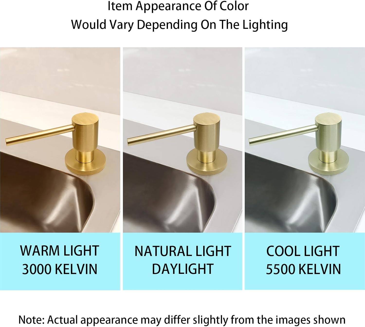 - Note on Finishes:Due to the reflective nature of metallic surfaces, the appearance of brushed gold may vary slightly under different lighting conditions. Natural or artificial light, as well as the hues of surrounding objects, can influence the final aesthetic in your space. Actual appearance when installed in the home environment may differ slightly from the images shown.