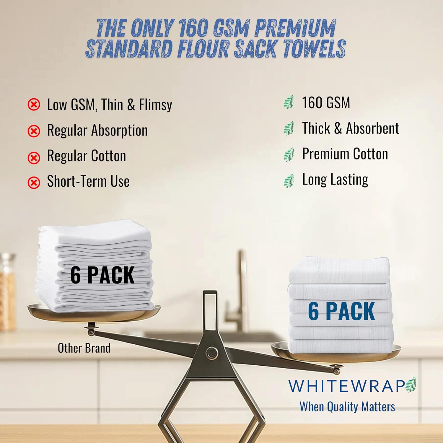 - ✅ Ultra-Thick 160 GSM Flour Sack Towels – Kitchen-Grade Absorbency Tired of thin, ineffective towels? WHITEWRAP’s high-density 160 GSM flour sack towels, made from 100% ring-spun cotton with a 130 thread count, offer exceptional thickness and ideal for drying dishes, wiping, and tough kitchen tasks.