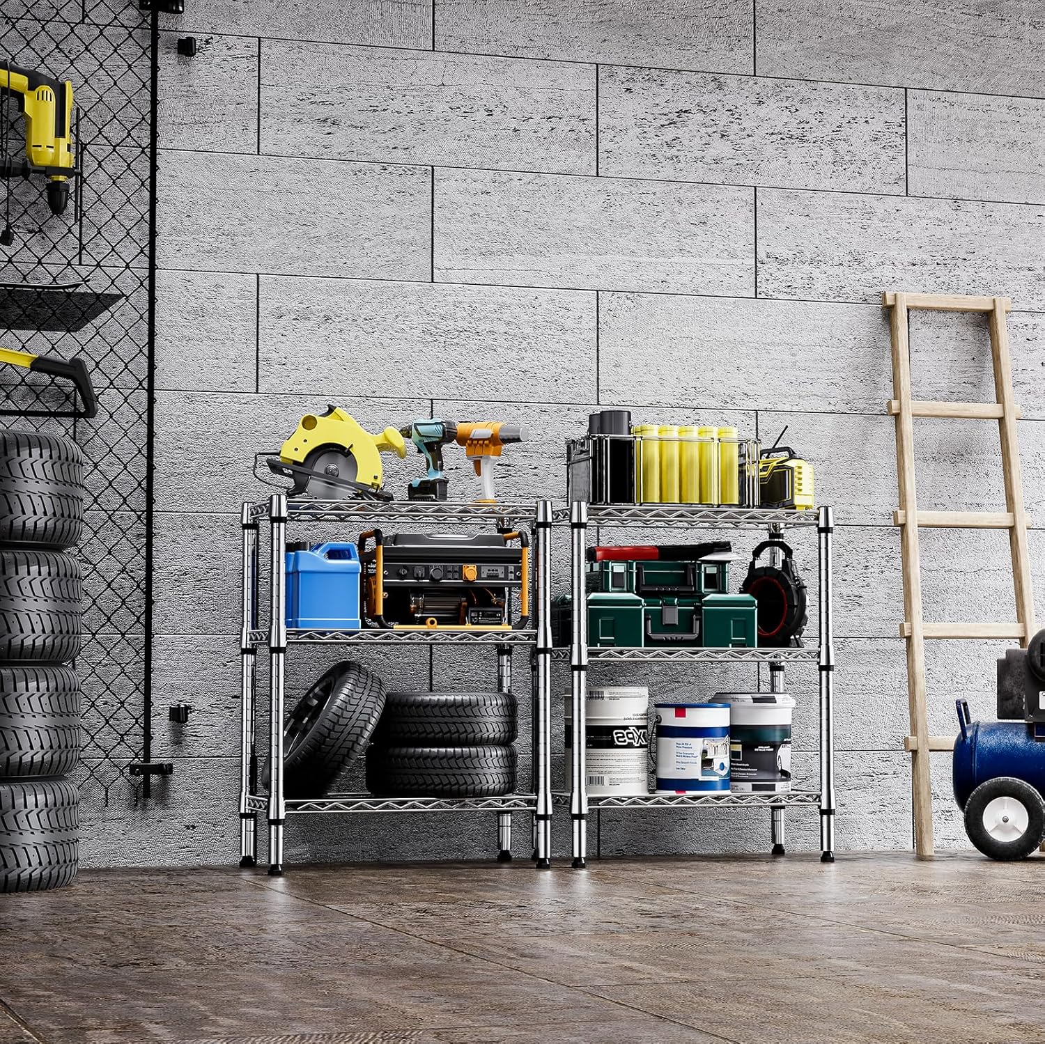 - VERSATILE DESIGN: The shelving units offer incredible versatility. It is suitable for use in a garage, balcony, pantry, and kitchen. Its special coating ensures water resistance, making it accommodated for humid environments like bathrooms