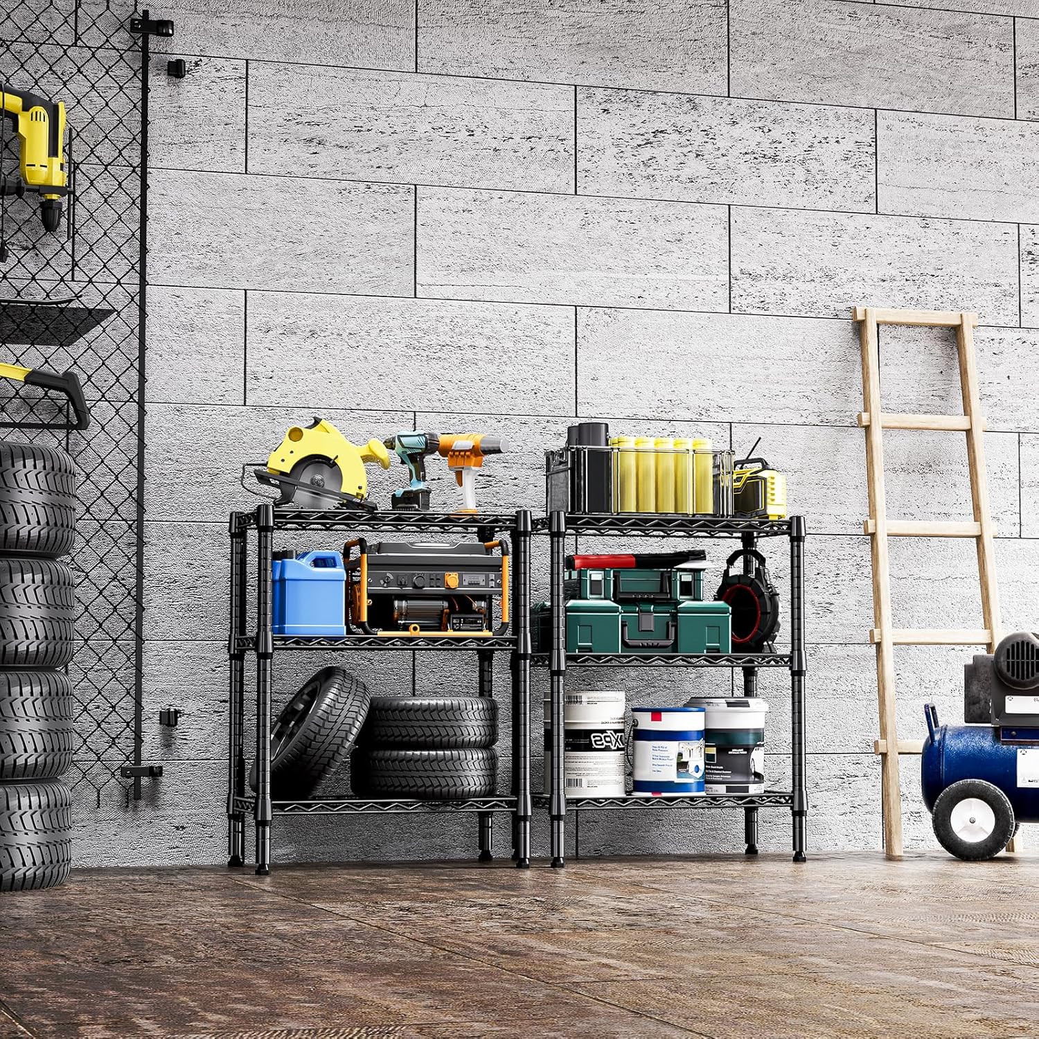 - VERSATILE DESIGN: The shelving units offer incredible versatility. It is suitable for use in a garage, balcony, pantry, and kitchen. Its special coating ensures water resistance, making it accommodated for humid environments like bathrooms