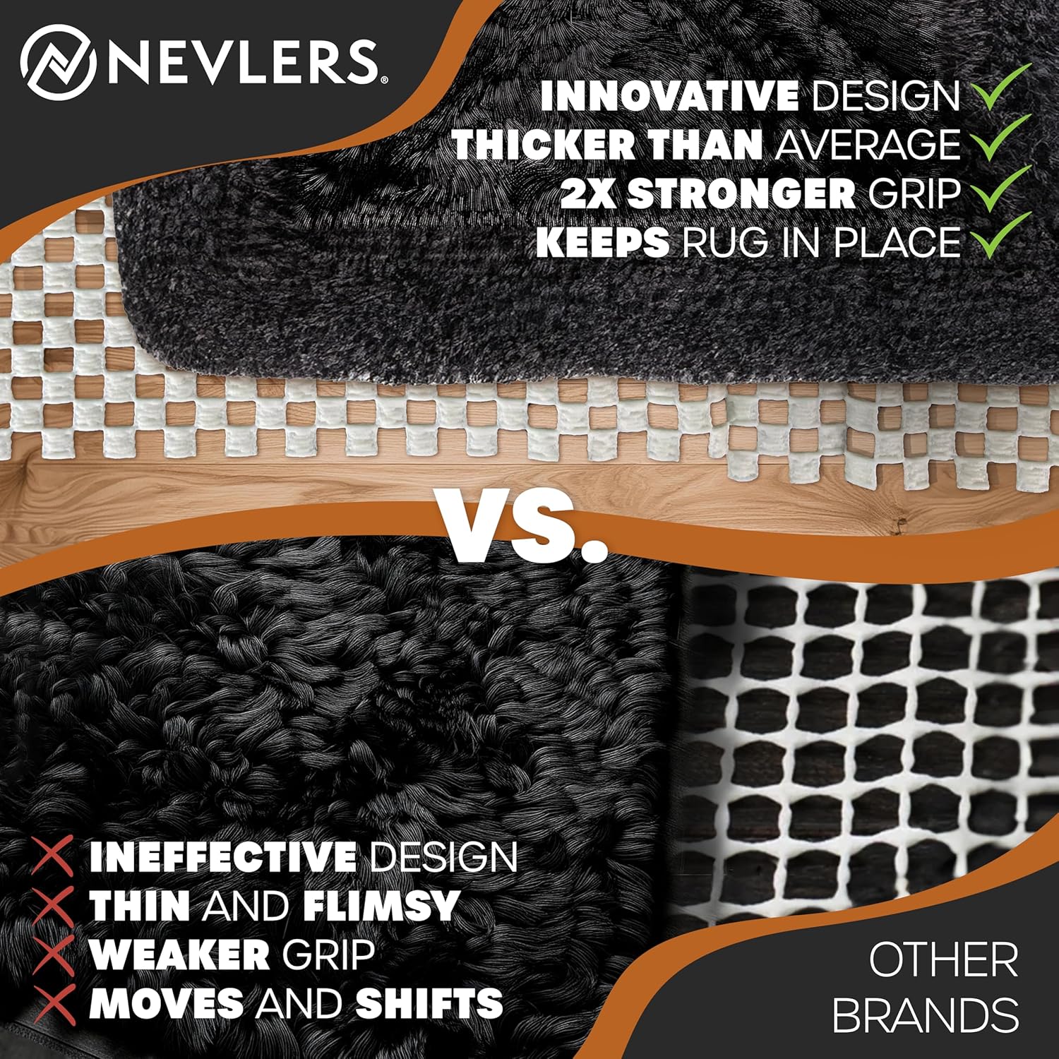 - More Coverage with a Bigger Roll: Say goodbye to shifting carpets with the Nevlers Non Slip Rug Gripper Roll. Measuring a substantial 3 ft x 60 ft, our anti slip rug grips runner pad offers broad coverage & is made from durable PVC for a reliable grip. Thanks to its double suction strength compared to the ordinary carpet pad , this non slip carpet gripper provides stability without the need for adhesives. Plus, our sound-absorbing, insulated under rug padding cuts noise & boosts rug longevity.
