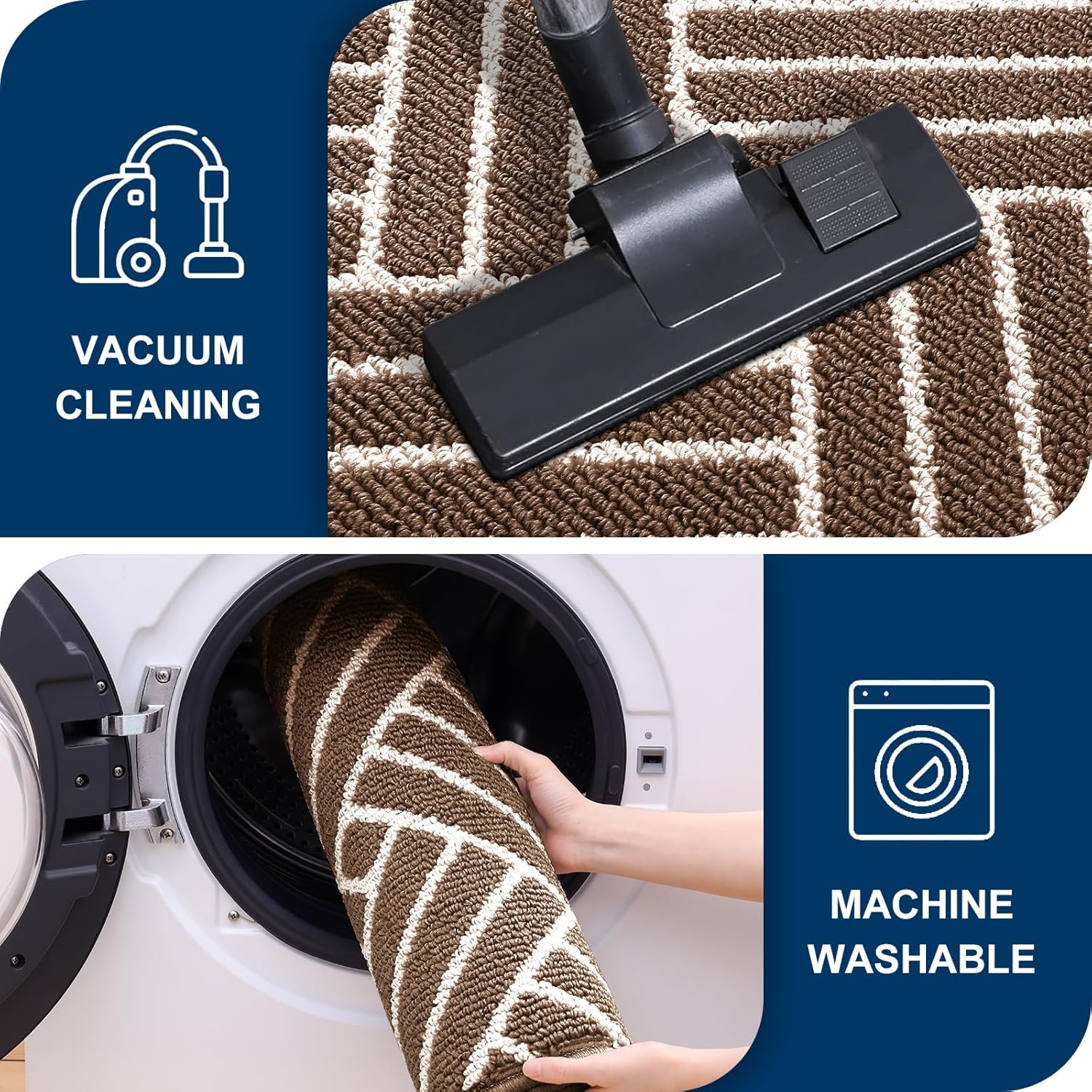 - [EASY CLEANING AND MAINTENANCE]: Cleaning the indoor entrance mat is simple and hassle-free. Easily shake off dirt, or use a broom or vacuum for regular cleaning. For a deeper clean, simply rinse it with a hose or machine wash with cold water.