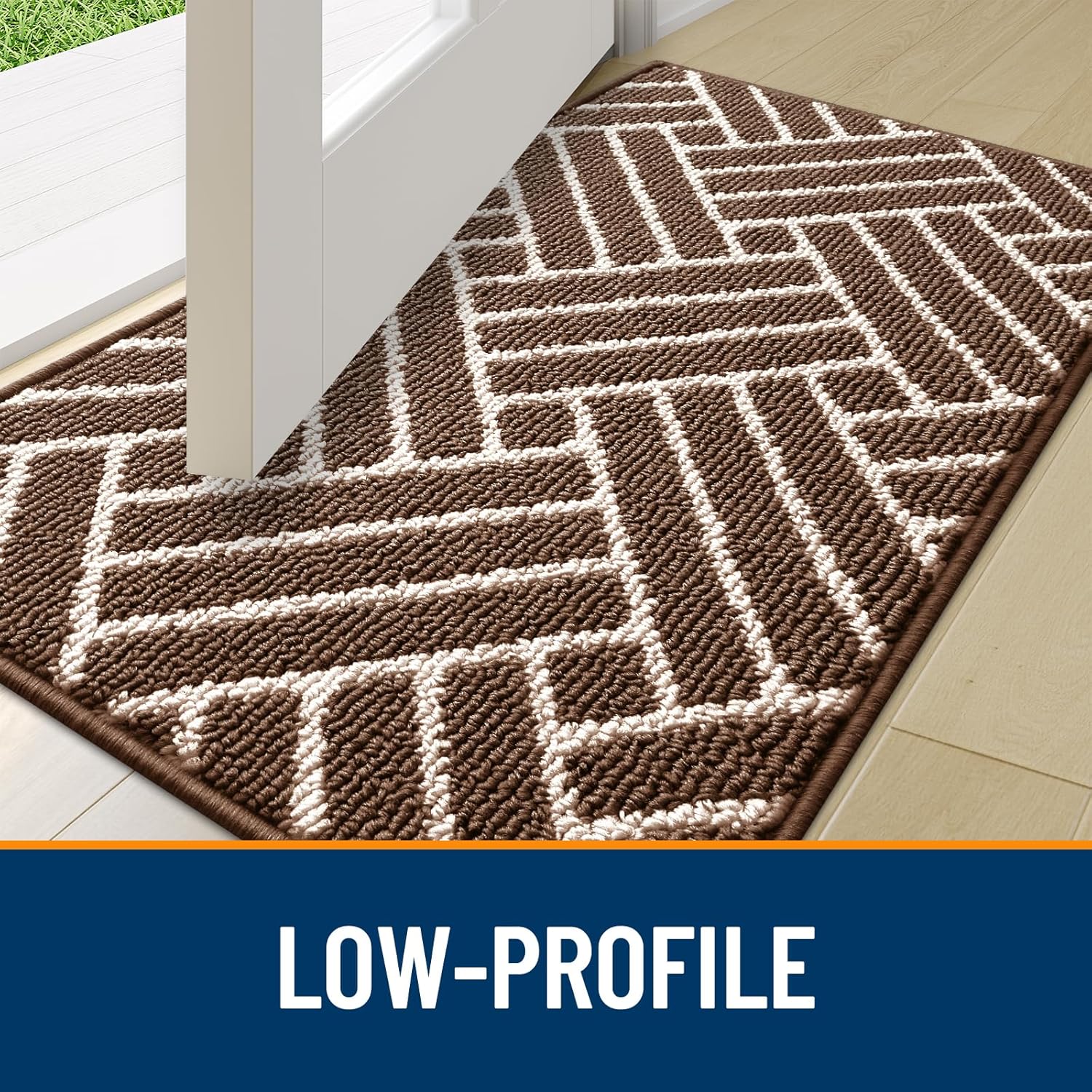 - [LOW-PROFILE DESIGN]: With a sleek geometric pattern, this mat adds a modern touch to your home. Its low-profile design ensures it fits smoothly under your door without obstructing movement, making it the ideal doormat to elevate your home's aesthetic.