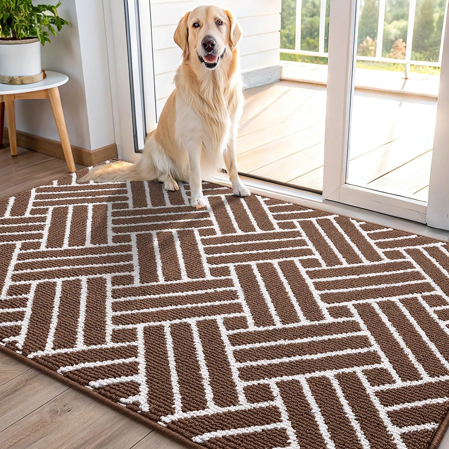 OLANLY Indoor Door Mat, 48x32 Inch, Dirt Resistant and Absorbent, Non-Slip Rubber Backing Floor Mats, Easy Clean Low-Profile Doormat for Entryway, Front Door, and Inside Entrance, Coffee