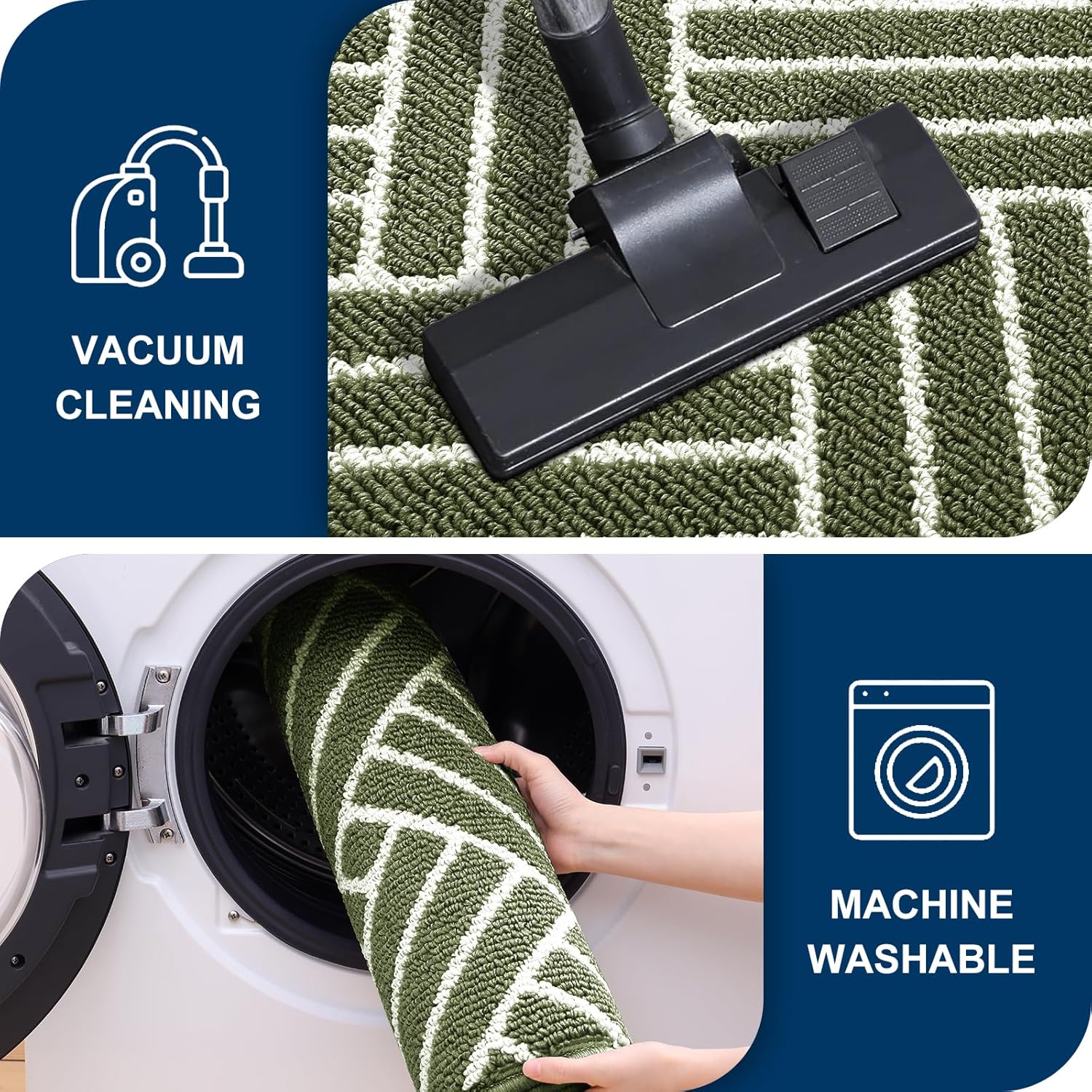OLANLY Indoor Door Mat, 32x20 Inch, Dirt Resistant and Absorbent, Non-Slip Rubber Backing Floor Mats, Easy Clean Low-Profile Doormat for Entryway, Front Door, and Inside Entrance, Green
