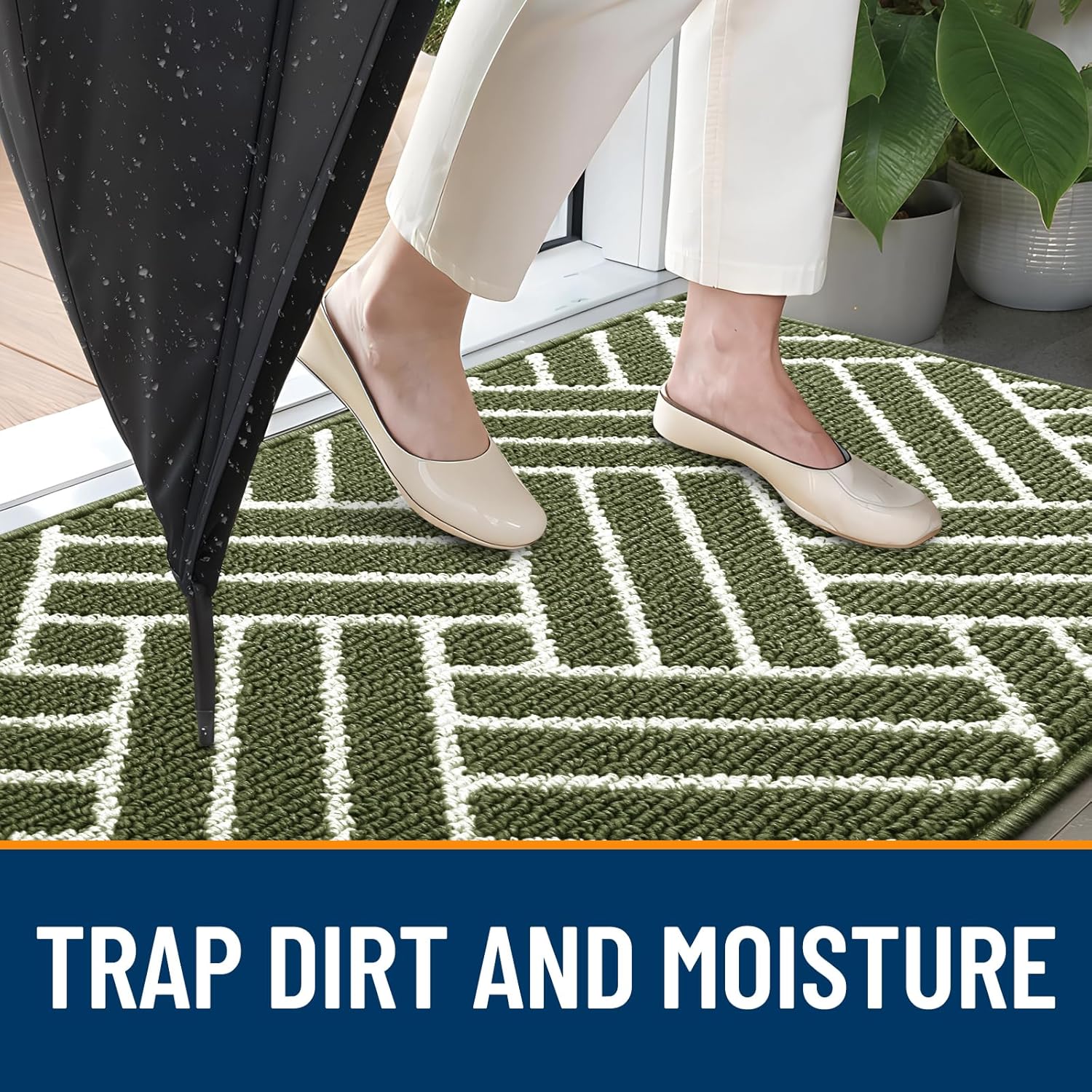OLANLY Indoor Door Mat, 36x24 Inch, Dirt Resistant and Absorbent, Non-Slip Rubber Backing Floor Mats, Easy Clean Low-Profile Doormat for Entryway, Front Door, and Inside Entrance, Green