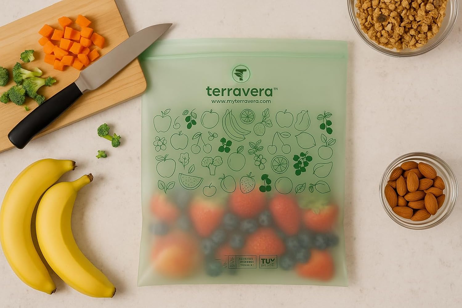 - PRODUCT FEATURES: terravera bags are guaranteed to remain strong, sturdy and tear proof when used in accordance with the recommended usage directions. Patented processing technologies. Handle tie and star sealed reinforced bottom to securely hold even the heaviest load.