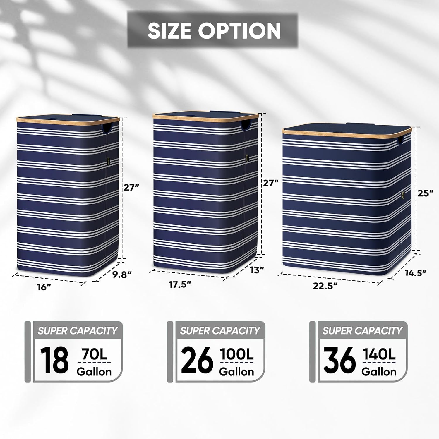 - [AMPLE CAPACITY AND EASY ACCESS] With 18 Gallon/26 Gallon/36 Gallon (70L/100 L/140 L) size option, the hampers for laundry provide ample capacity to hold all your dirty clothes, towels, bedding, and more. The lightweight lid is easy to open and close, providing quick and convenient access to your laundry.