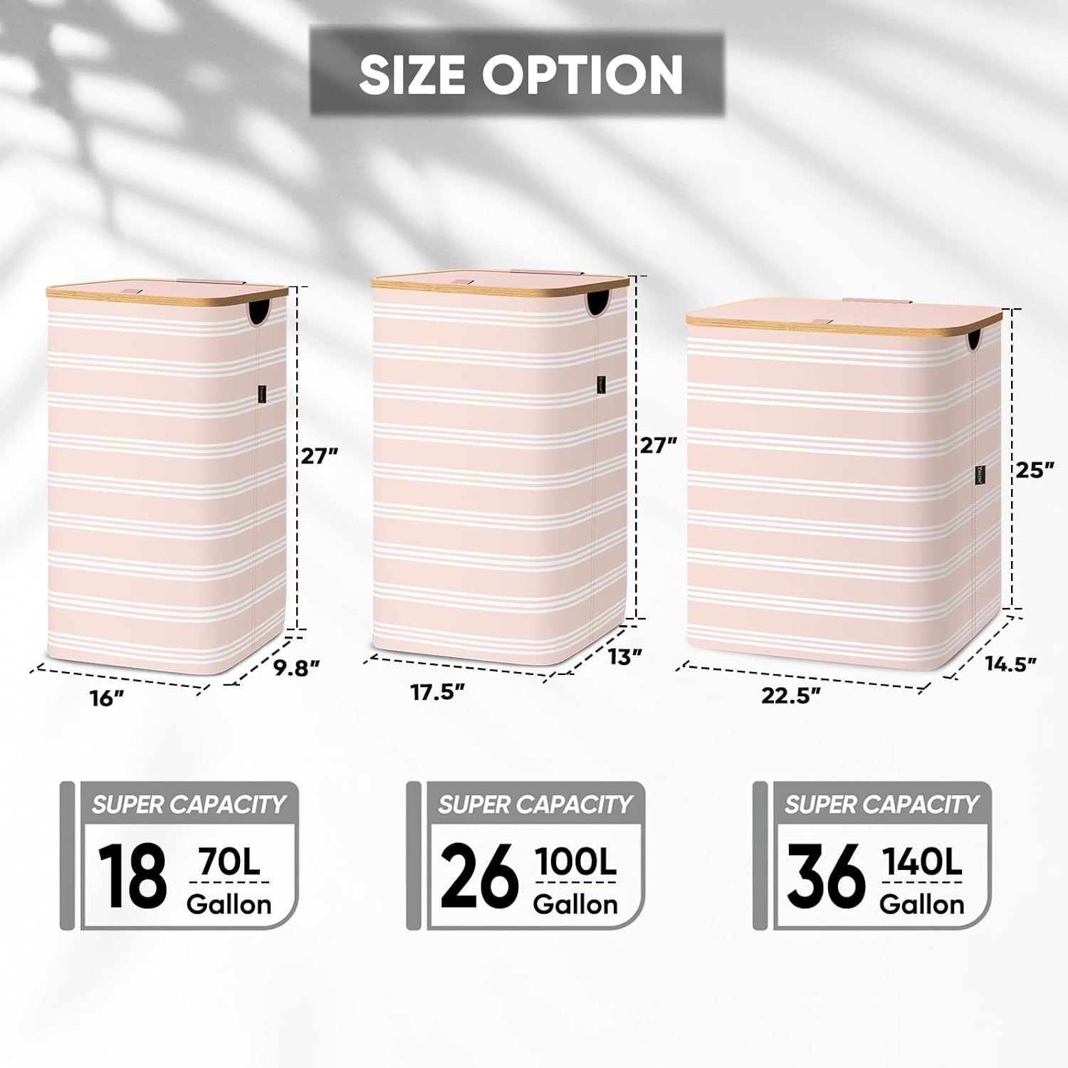 - [AMPLE CAPACITY AND EASY ACCESS] With 18 Gallon/26 Gallon/36 Gallon (70L/100 L/140 L) size option, the hampers for laundry provide ample capacity to hold all your dirty clothes, towels, bedding, and more. The lightweight lid is easy to open and close, providing quick and convenient access to your laundry.