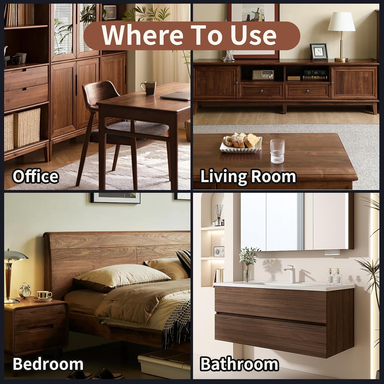 - Unique dark walnut color series in 7 colors: Natural Walnut, Antique Walnut, Red Walnut, Dark Walnut, Cherry Walnut, Ebony Walnut, Mahogany Walnut