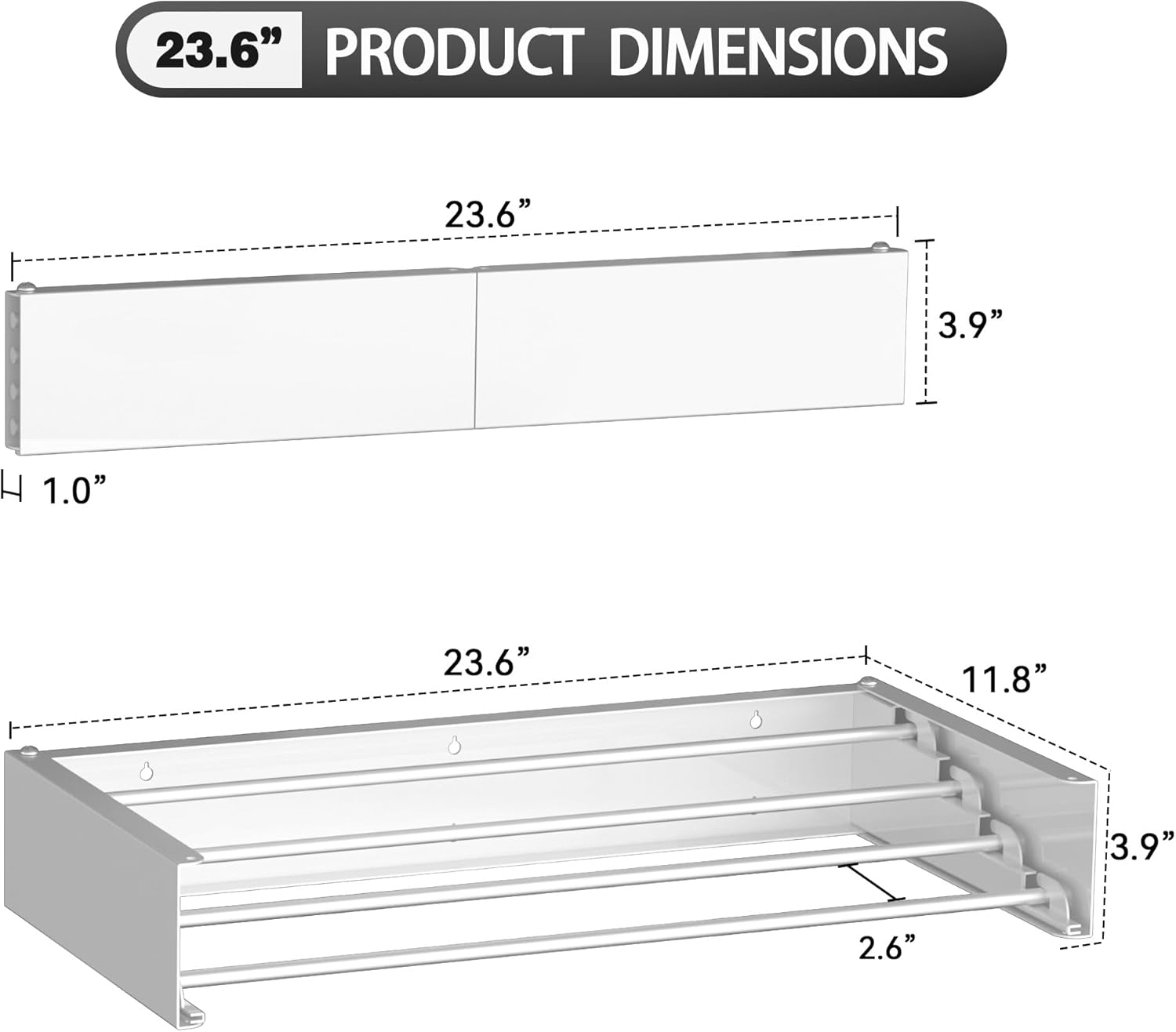 - Space-Saving Design - This laundry drying rack is adopted with collapsible design, so you can fold it when not in use; The compact and retractable wall-mounted design maximizes limited space, adds elegance to your space, and can help free up your floor space; Unfolded Size: 23.6"(L) x 15.7"(D) x 3.9"(H); Folded Size: 23.6"(L) x 1.0"(D) x 3.9"(H)