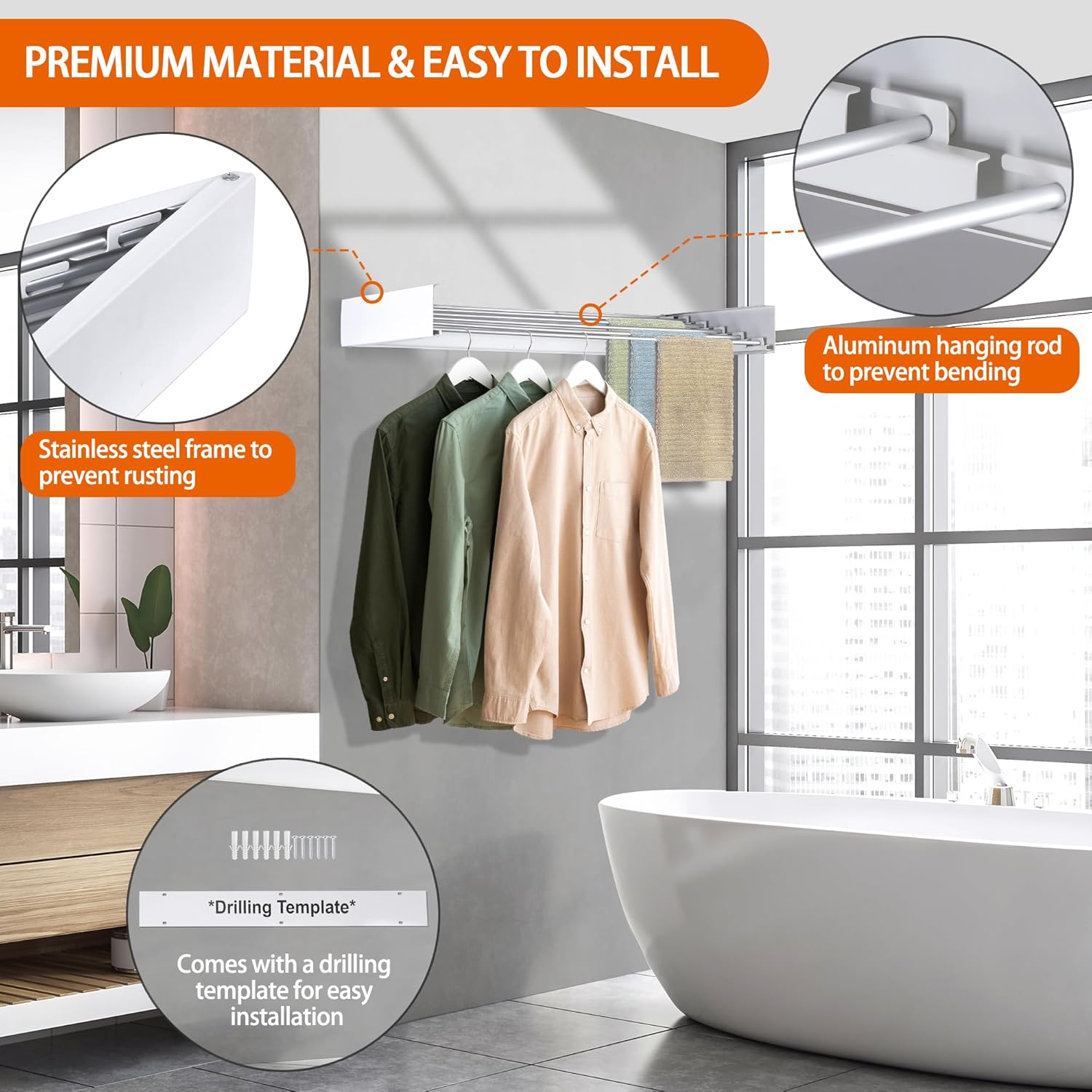 - Easy to Install - Equipped with a drilling template, it allows you to easily confirm the correct location to drill holes in the wall; At the same time, the pre-assembled design helps you simplify the installation process, allowing you to easily install it in minutes