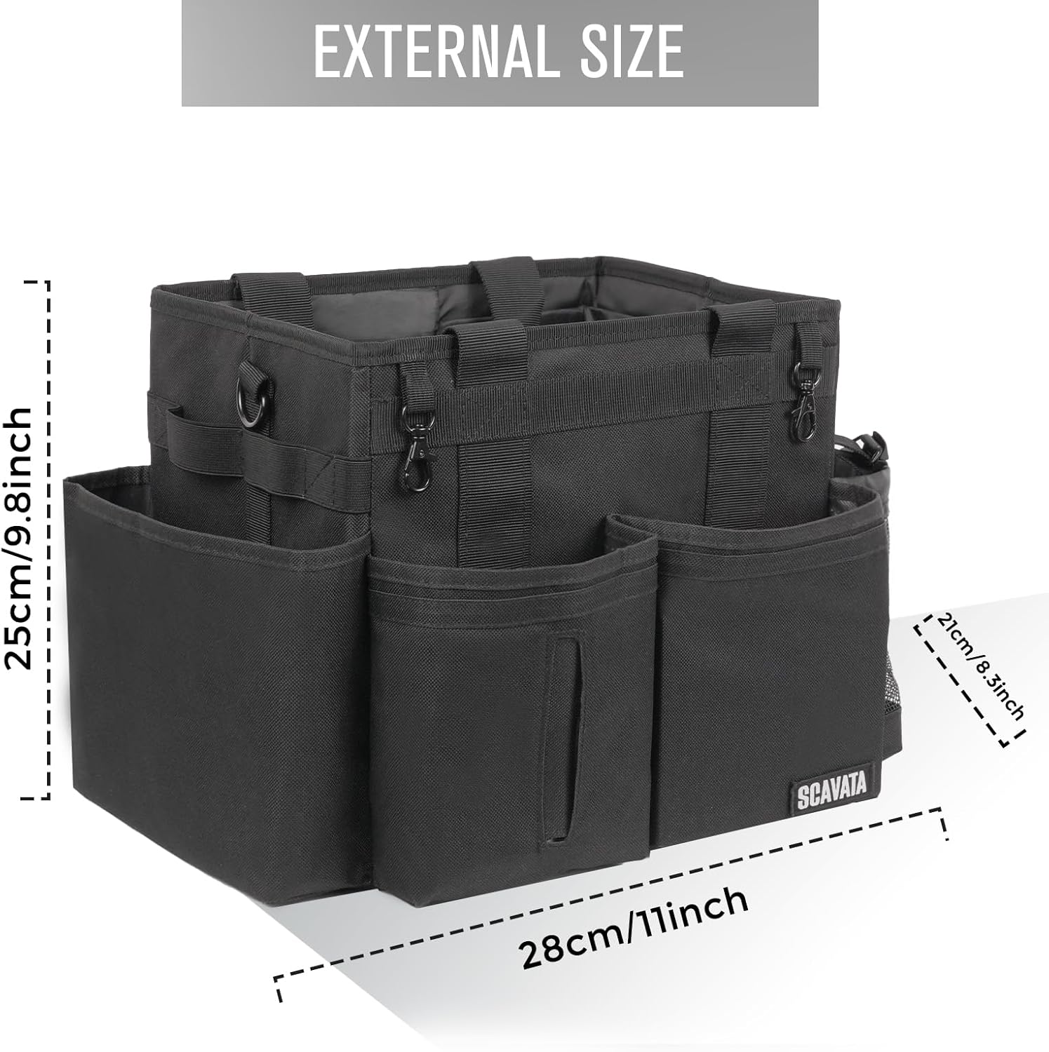 - Compact & Wearable Design: SCAVATA small cleaning caddy measures 9.8 x 11 x 8.3 inches, making it ideal for organizing cleaning essentials without taking up much space. Equipped with a sturdy handle and adjustable shoulder straps, it allows for hands-free mobility, perfect for housekeepers and cleaners working in tight spaces, under sinks, in cars, or on-the-go.