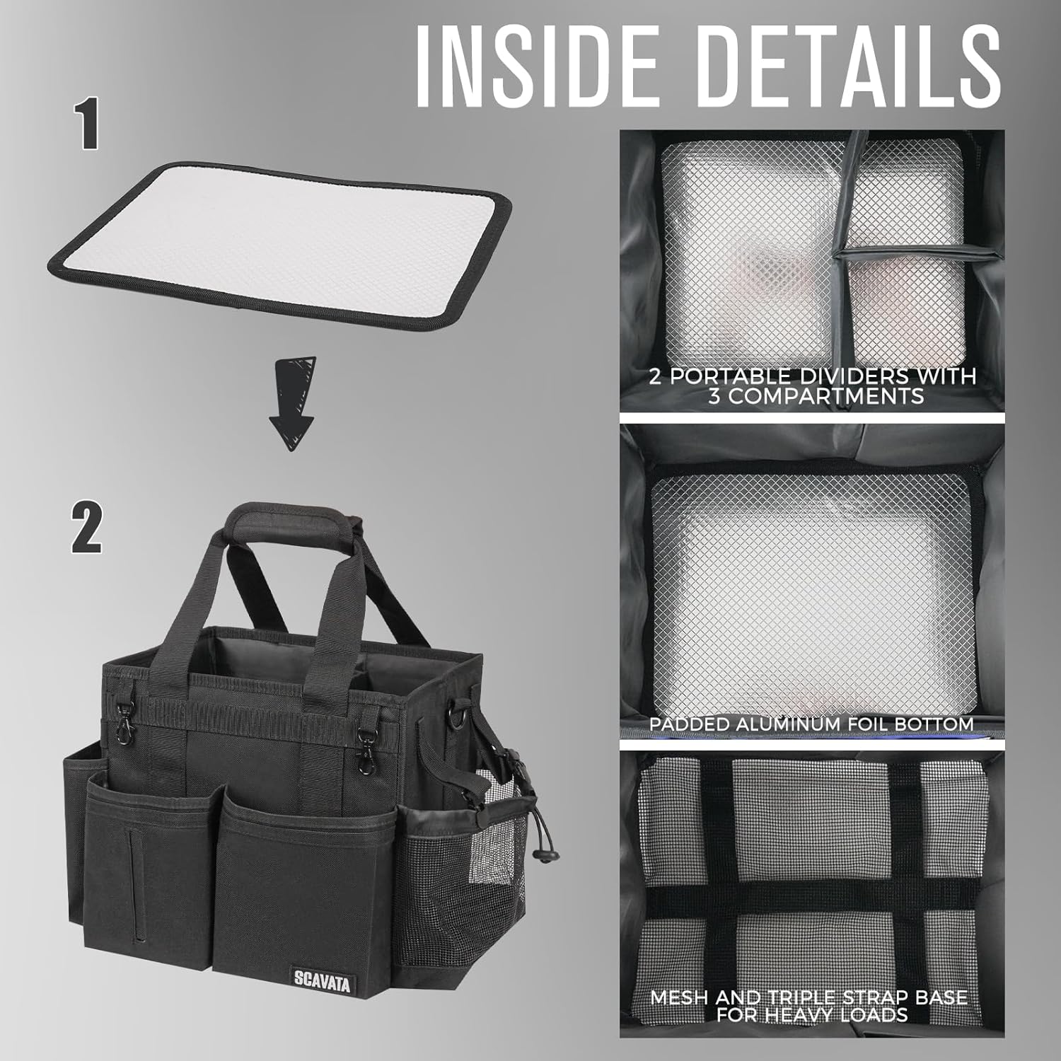 - Customizable Internal Layout: The wearable cleaning caddy bag comes with 2 adjustable dividers, allowing you to arrange the inner compartments to fit various cleaning tools and supplies. The aluminum foil pad on the bottom keeps contents dry and fresh by preventing moisture, grime, and unpleasant odors from affecting stored items.
