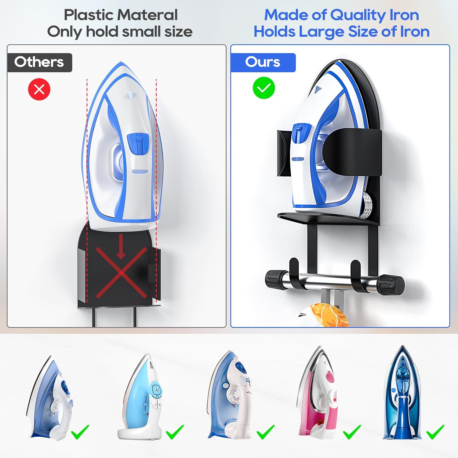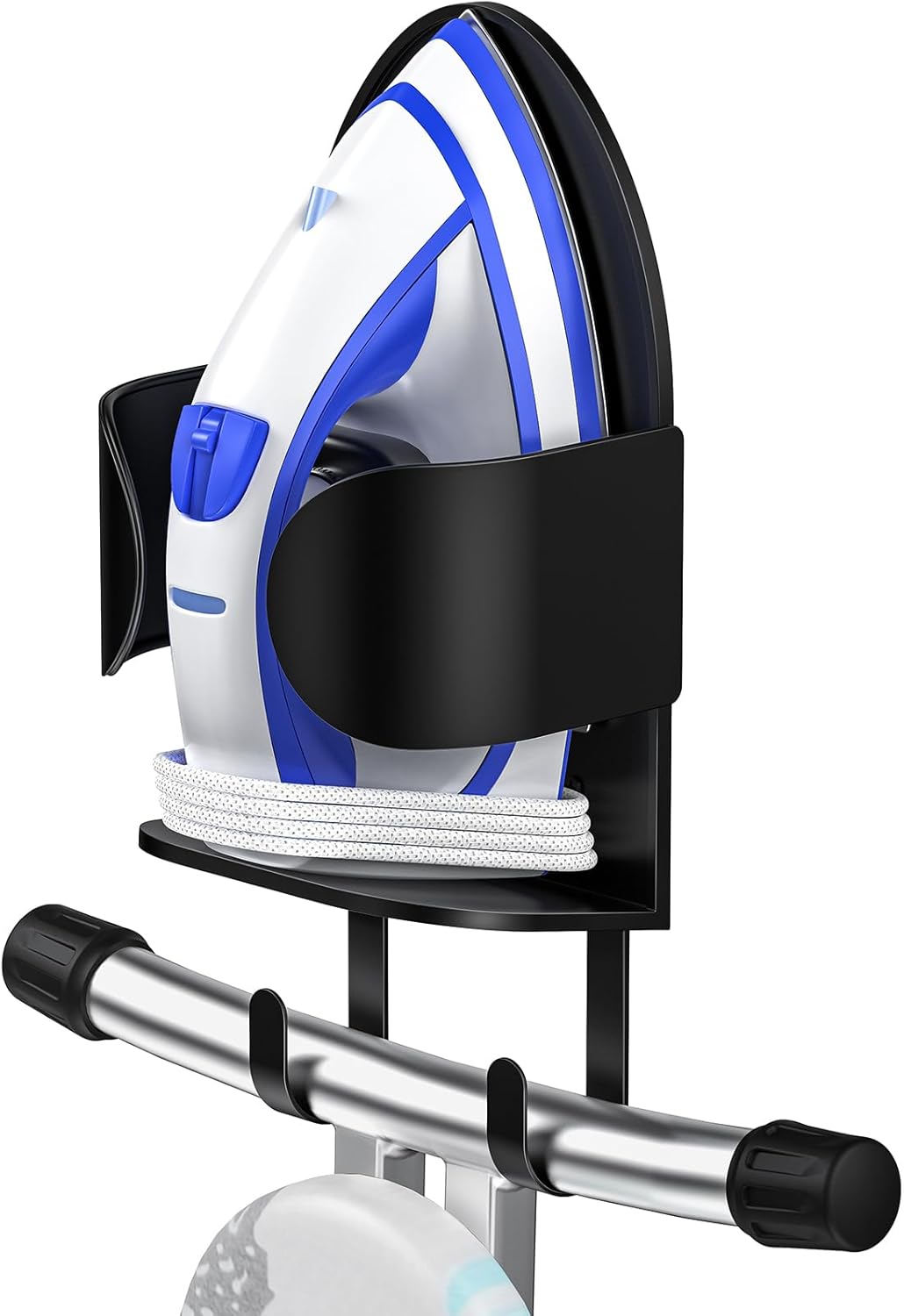 - STURDY AND STYLISH: The ORLESS iron and ironing board hanger includes a wire arm and a 20°tilted wooden base, which is designed to ensure the iron can sit securely and safely with the cord wrapped around the arm.