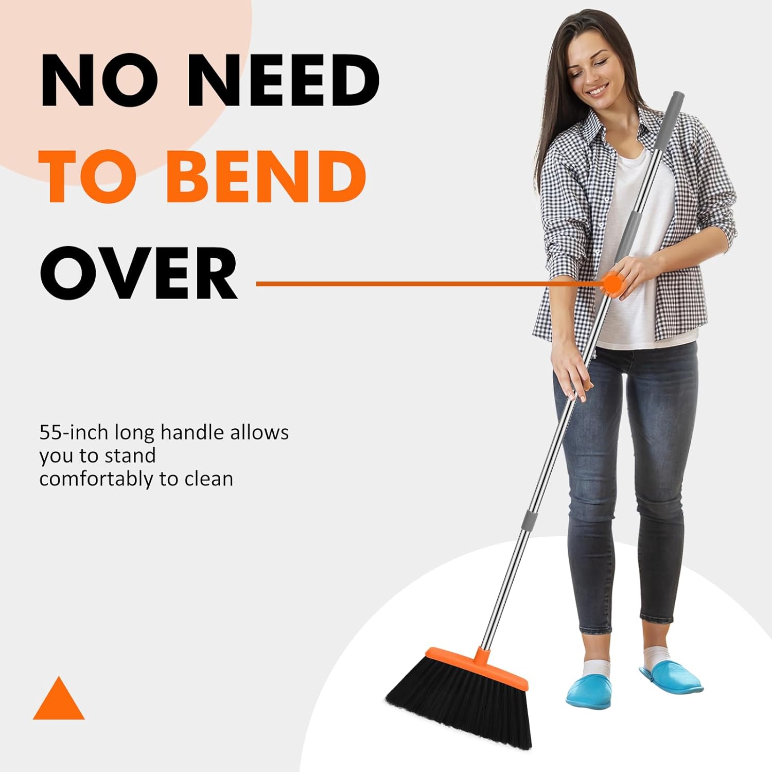 - ENHANCED LARGE BROOM:The broom with 56 inch long adjustable handle so you don't have to bend over and the height can be adjusted to suit your needs. 13.7-inch broom head reaches wider areas of the floor and cleans more efficiently.