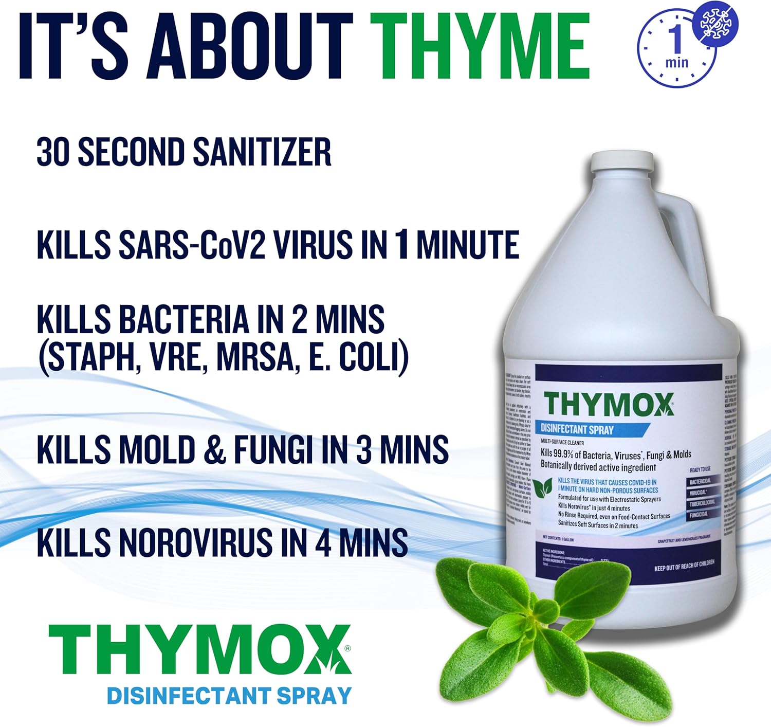 - All Natural and Pet Friendly: Thymox is a pet friendly cleaner and disinfectant, ensuring that your cleaning routine is safe for your furry friends. Utilize it as a thymes cleaning spray for water damage restoration, mold removal, and maintaining a clean and healthy environment.