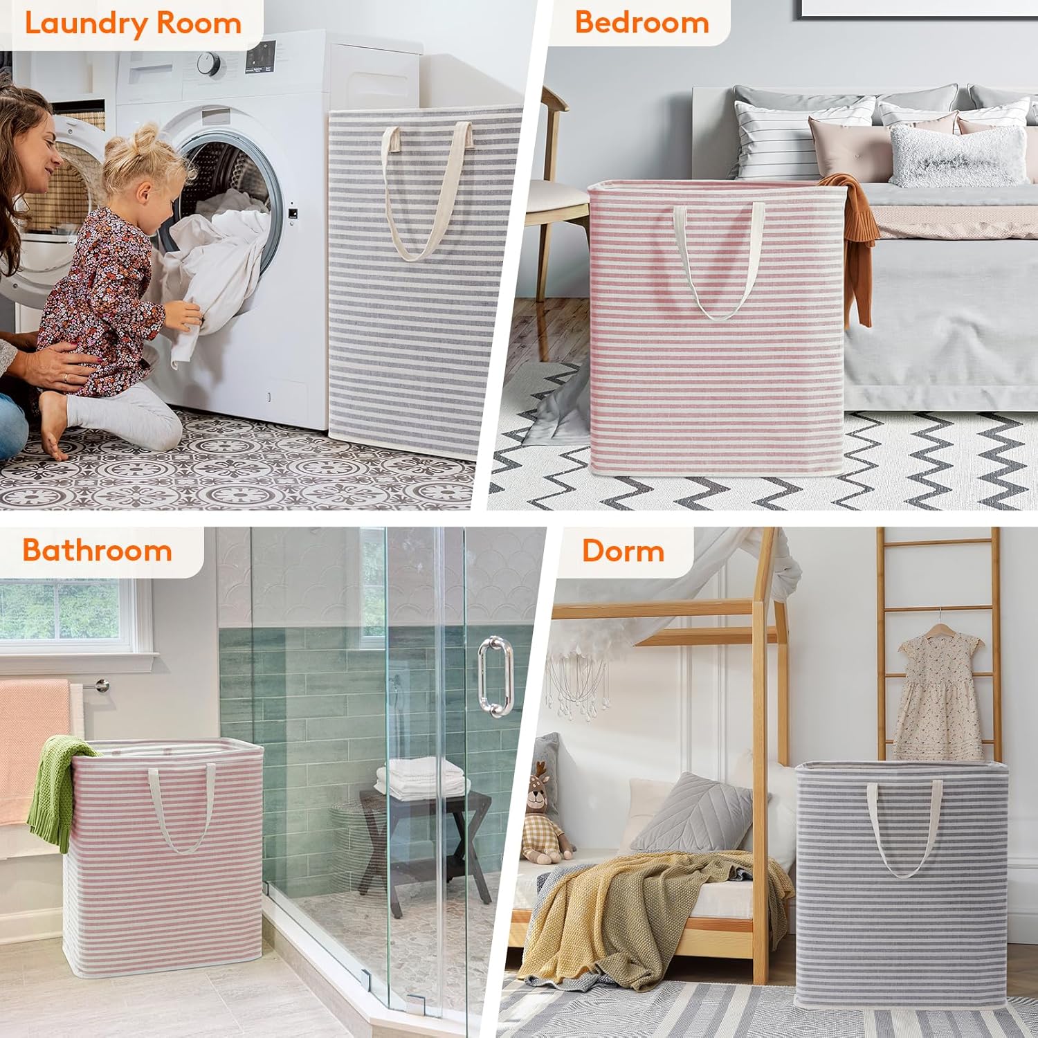 - Collapsible Design: Our laundry hampers for bedroom can be easily folded into 1 piece for a save space storage when not in use. It is ideal for laundry room, bedroom, bathroom, closet and even for college dorms, travel, rv, campers, hotel use and shopping.