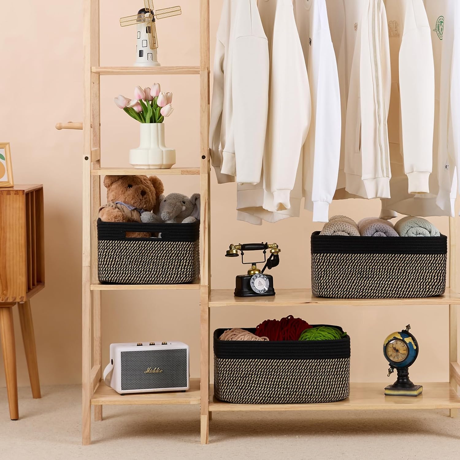 - [ Stylish Design ]: With a modern minimalist design, our woven rope baskets are a chic alternative to traditional rattan. They’re perfect for closets, changing table organizer, and cube shelves, adding warmth and texture to any room while tackling home clutter