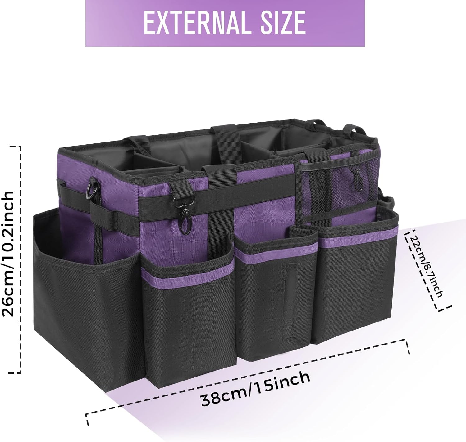 - Exquisite Details: The 5 inner compartments are large enough for organizing cleaning tools. 3 individual deep outer pockets, 1 mesh side pocket and 1 trash bag dispenser allow you storage and access of other cleaning tools. Also, securely zipped pocket is design for safely storing your important items