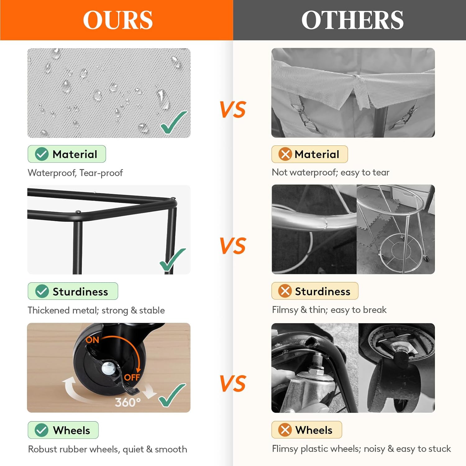 - Unmatched Durability: Crafted with a premium 0.6'' (1.6 cm) diameter steel tube frame, expertly treated for rust resistance; the laundry hamper is made from leather and tear-resistant Oxford fabric, featuring a waterproof lining inside; this laundry cart is built to last—your reliable companion for years to come