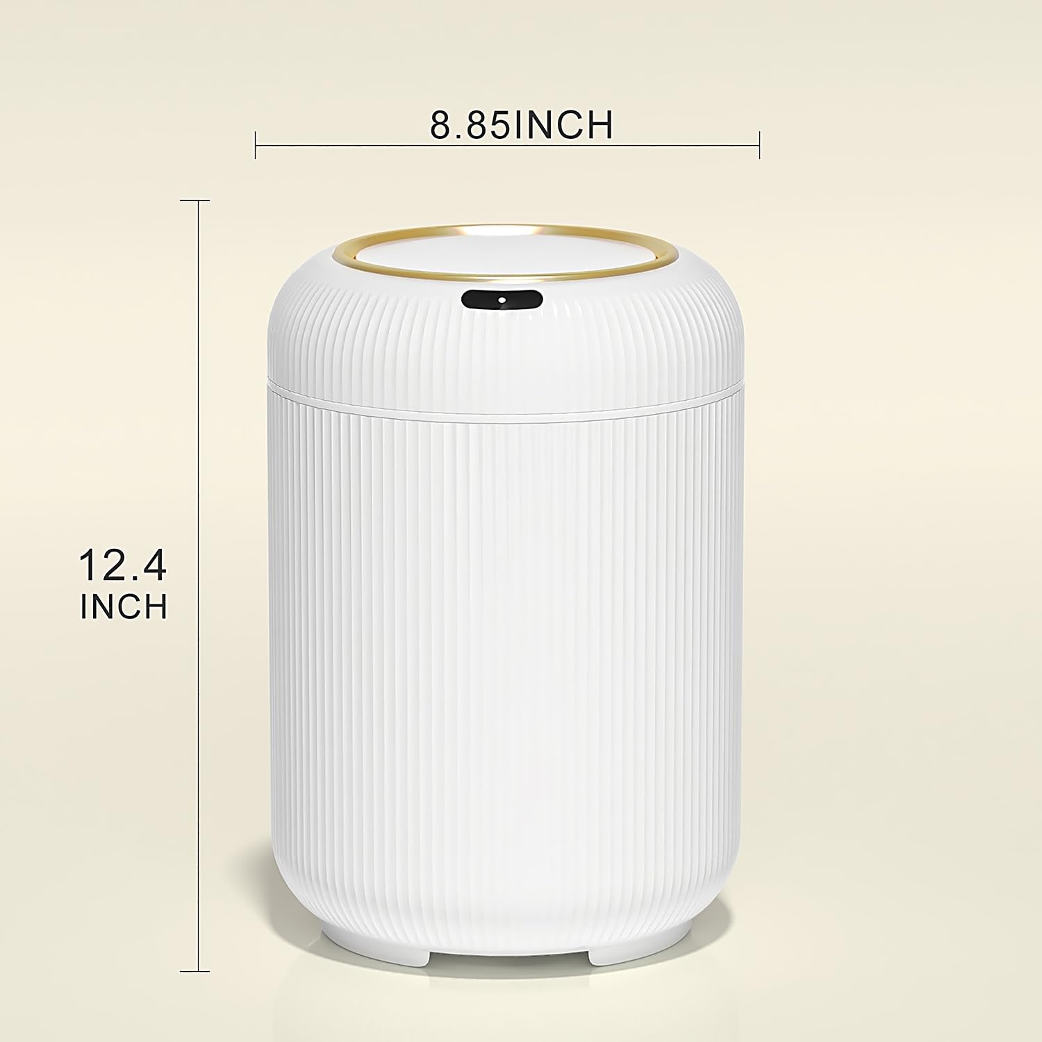 - 【Odor Control & Silent Operation】The no touch diaper pail effectively seals in odors, ensuring a fresh home environment. Its soft lid design minimizes noise, delivering a quiet experience during use.The inside of the white and gold trash can comes with a black pressure ring. Take it out and put a garbage bag over it, you can hide the unpleasant bag inside.