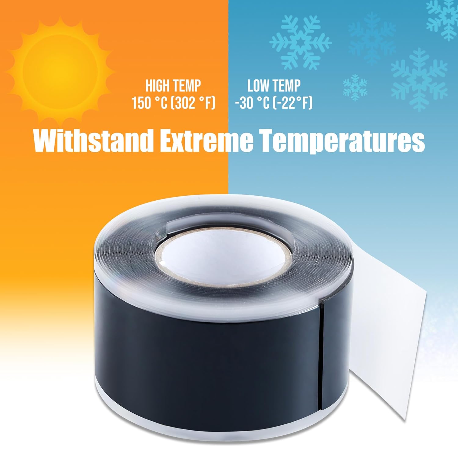 - Temperature Resistance - Self-adhesive silicone tapes remain stable and safe at high temperatures as low as -22℉(-30 °C ) and as high as 302℉ (150 °C)