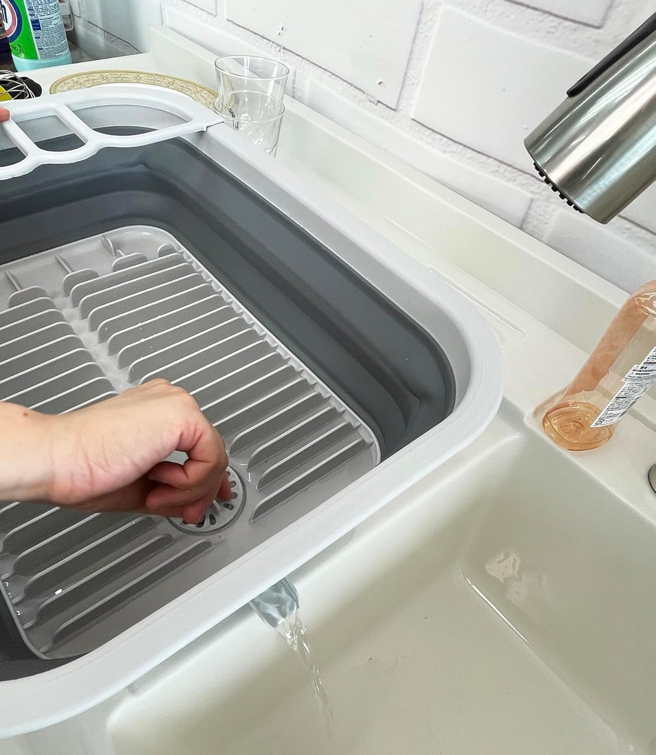SAMMART 12L (3.17 Gallon) Collapsible Dish Drainer with Swivel spout - Foldable Drying Rack Set - Portable Dinnerware Organizer - Space Saving Kitchen Storage Tray (Grey/Steel Grey)