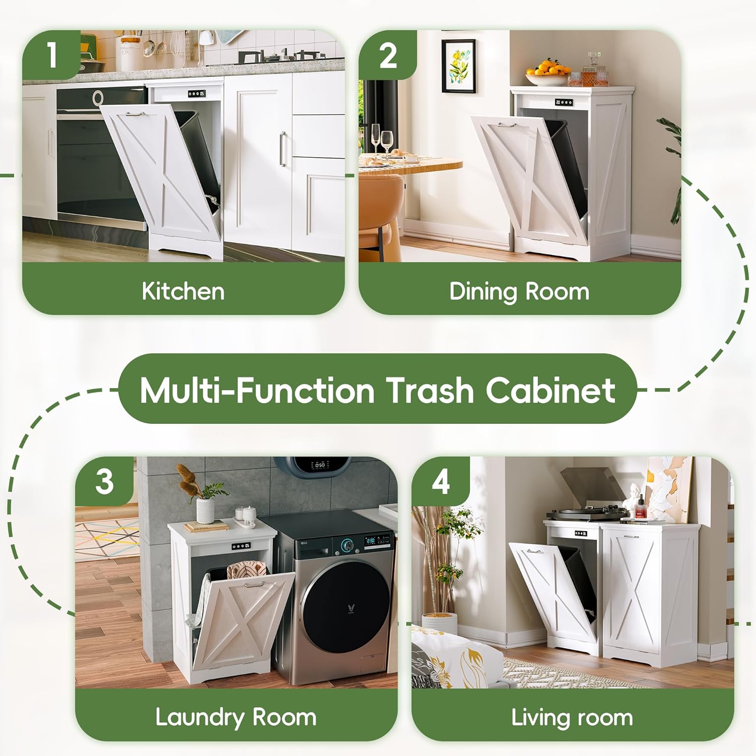 - Spacious Tilt-Out Storage Design: With dimensions of 20.5"W x 15"D x 33.5"H, this cabinet accommodates a 10-gallon trash bin, offering ample space for waste or recycling. The tilt-out design allows for easy access while maintaining a tidy appearance