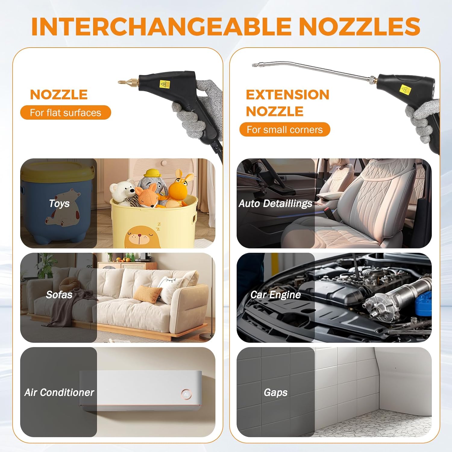 - **Versatile Applications: Ideal for cleaning car interiors, floors, tiles, range hoods, upholstery, refrigerators, air conditioners, car tires, bathrooms, and kitchens.