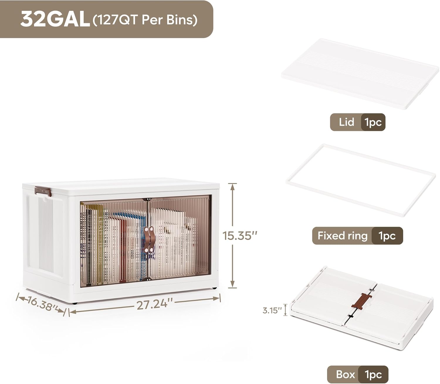 Jalove 30Gal Large Storage Bins with lids, 120QT Plastic Stackable Storage Containers with Wheels, Collapsible Closet Organizer and Storage Drawers,Clothes Organization for Cabinet Home, 1Pack White
