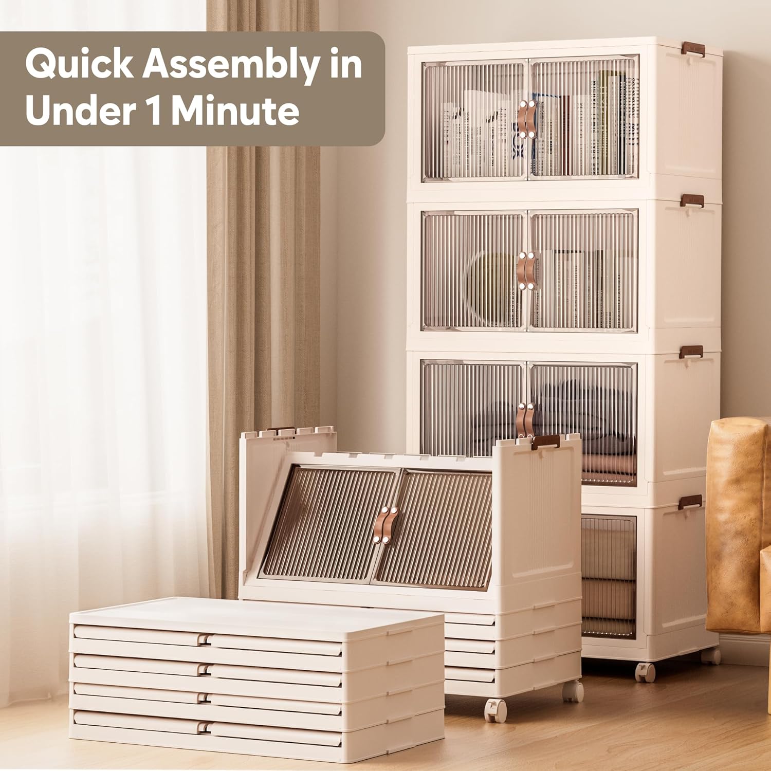 - 【Magnetic Doors & Rotating Wheels】The bins offer two opening options: front or top. The magnetic closure allows easy access. The 4 rotating 360-degree wheels make them easy to move, ideal for use in storage containers and closet organization in any room like your closet or bathroom.