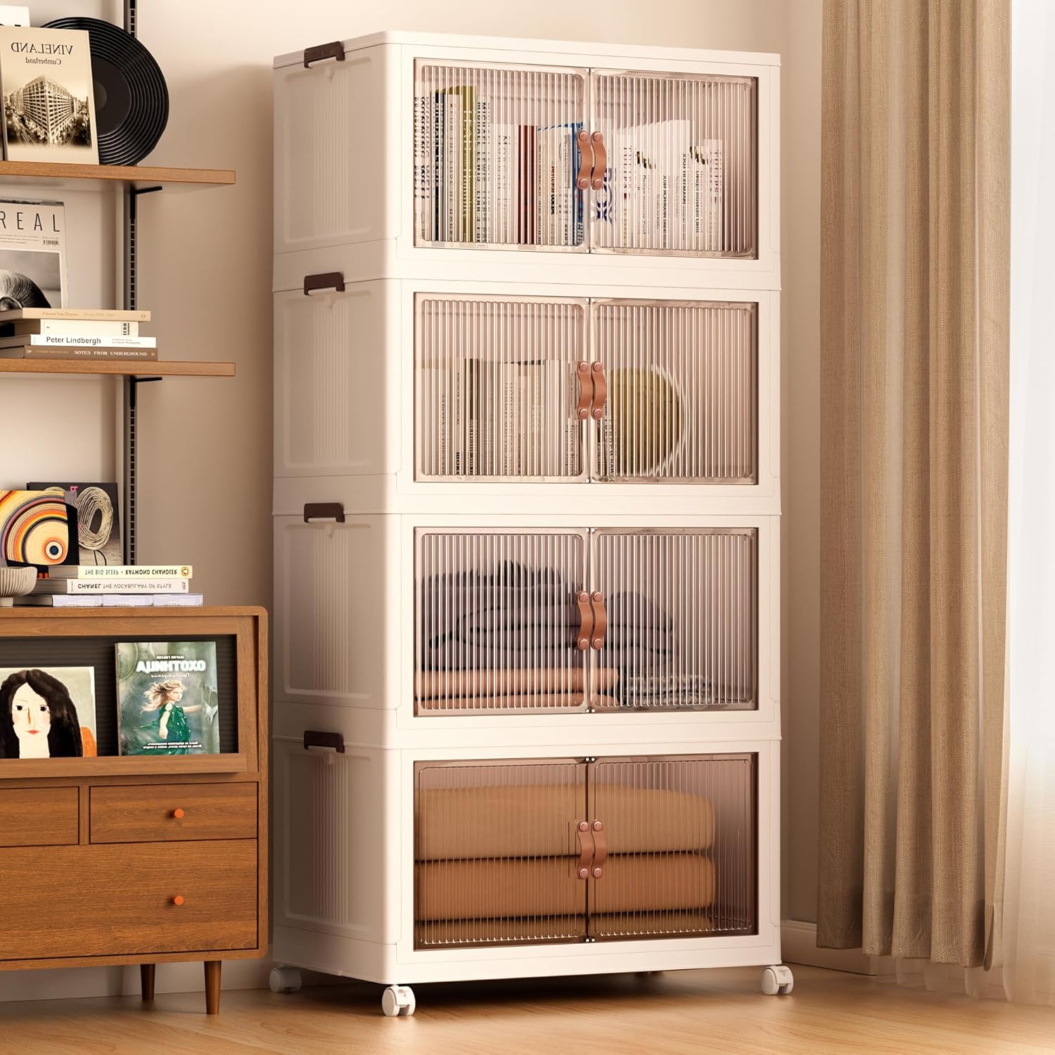 - 【High Quality & Safety】Made with high-impact polypropylene (PP), these bins ensure durability and protection for your belongings. The ABS front panel adds clarity and strength. They can also be used as a plastic storage cabinet with doors, offering extra convenience for organizing items.