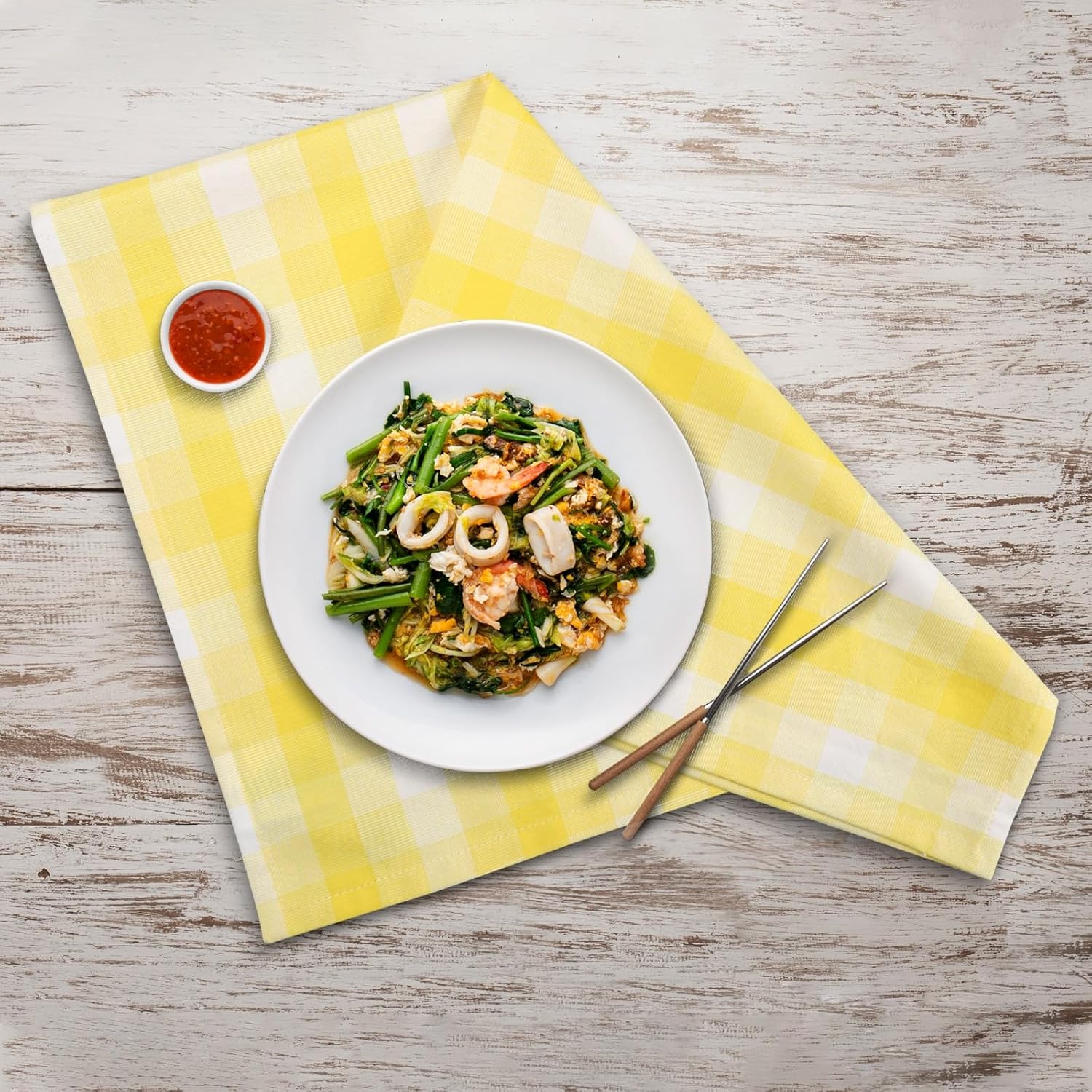 - MACHINE WASHABLE: Easy to maintain, these durable napkins and towels can be machine washed multiple times in cold water, without having their color fade.