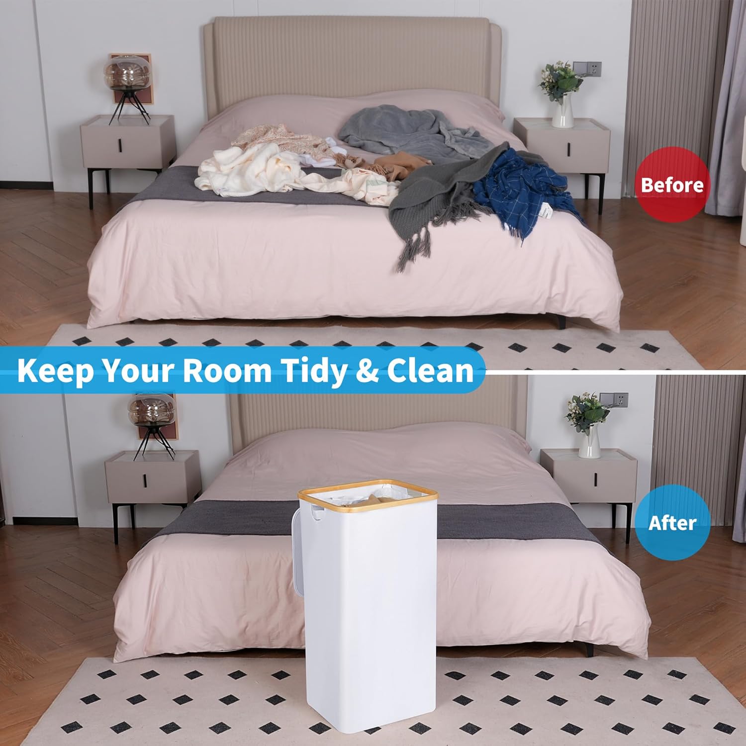 - 【Bamboo Handles and Removable Liner】The Laundry bin comes with sturdy bamboo handles for easy carrying and a removable inner bag for convenient laundry sorting and machine washing. The bamboo handles offer a natural, eco-friendly touch, while the liner simplifies the laundry process, keeping your space organized and clean.