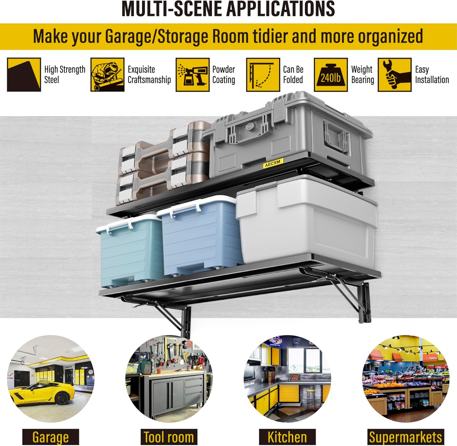 - STABLE AND SAFE: Folding storage racks are reinforced and safely designed for each connecting pivot point, With chamfered corners to prevent bumps and injuries, the overall solid and beautiful, Allowing you to organize and categorize messy and scattered items in an orderly manner, Making your garage/storage room tidier and more efficient to use while expanding the space. Perfect for walls in garages, Storage rooms, Living rooms, Kitchens and other interior spaces