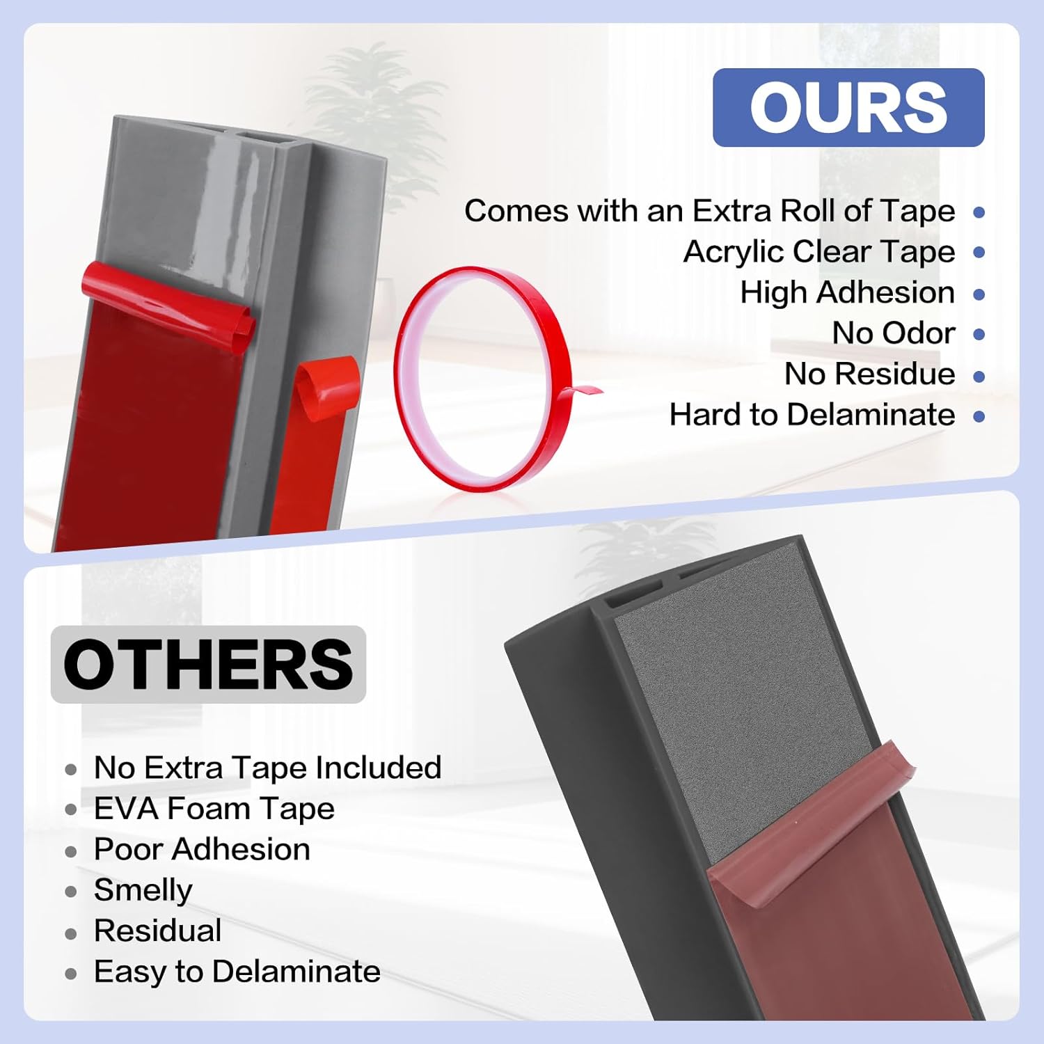 - Self-Adhesive Design: The door to tile transition strip reducer features an upgraded design with dual self-adhesive strips, providing a stronger, more secure hold. Installation is quick and simple—just peel and stick without the need for drilling, preserving your floors