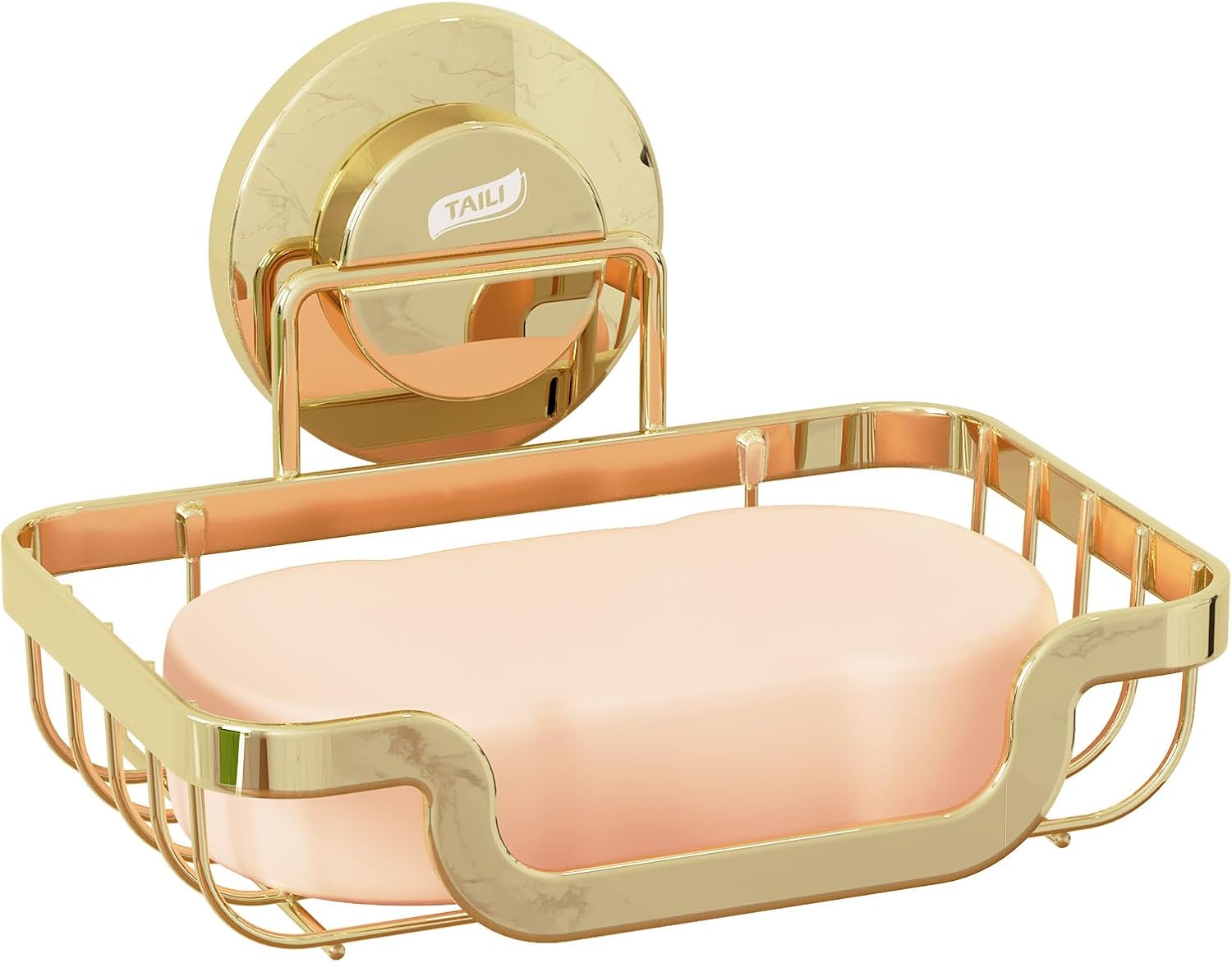 TAILI Soap Holder Bar Dish Suction Cup, Bar Shampoo Rack for Shower Wall, Draining Soap Saver Tray for Bathroom, Rustproof Stainless Steel Sponge Holder for Tub, Kitchen, Drill-Free, Gold