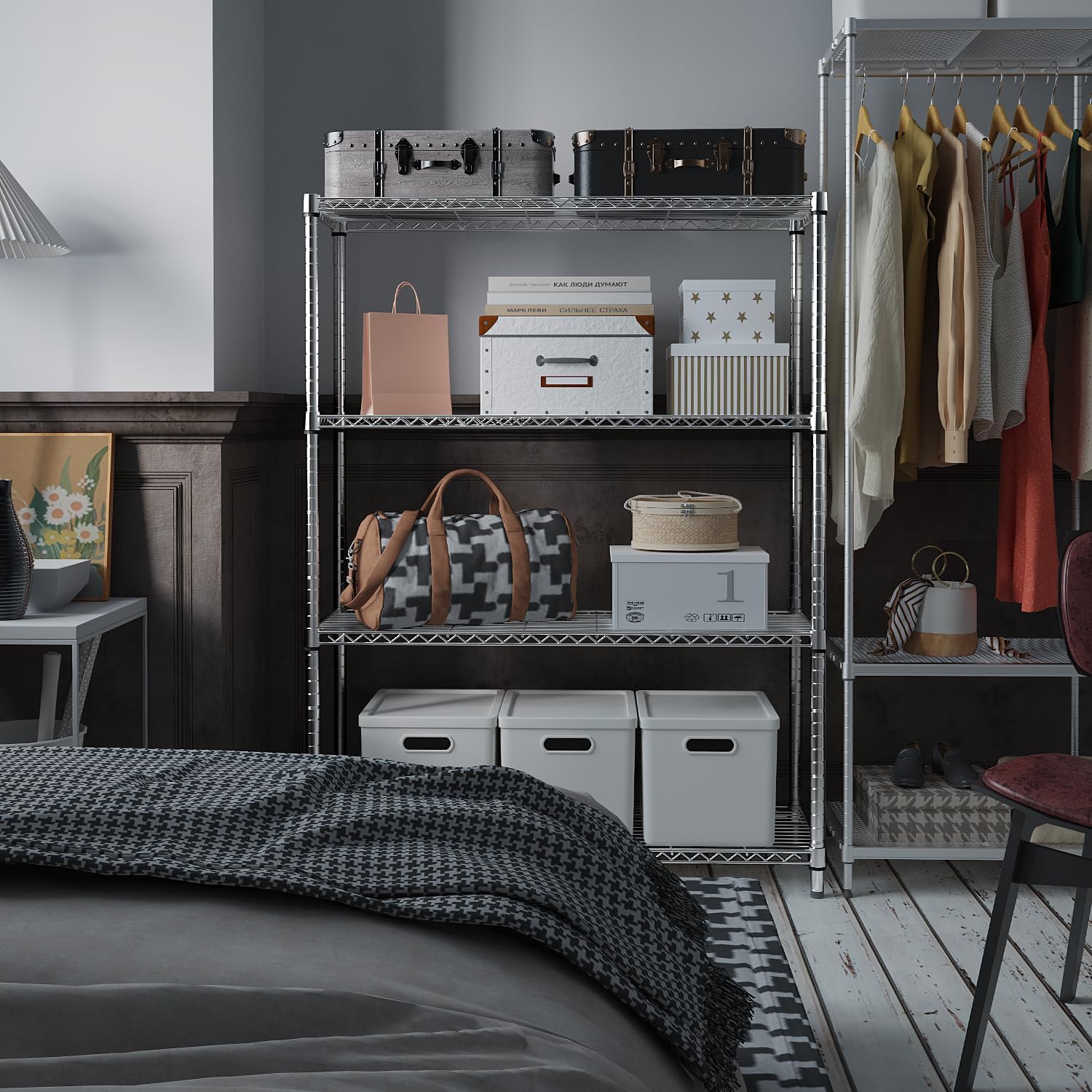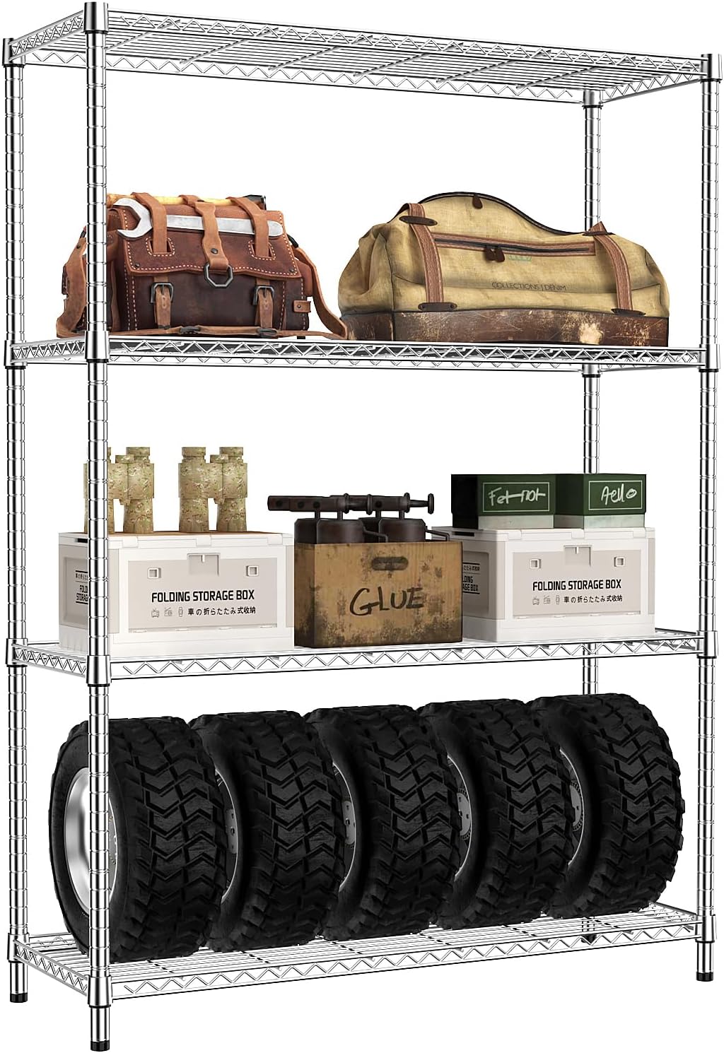 IZEUK 4-Tier Adjustable Heavy Duty Metal Wire Shelving Unit, Wide Storage Rack Organizer for Garage, Kitchen, Office, Dorm, Warehouse (Silver, 15.8" D x 45.8" W x 59.4" H, 1400 lbs Capacity)