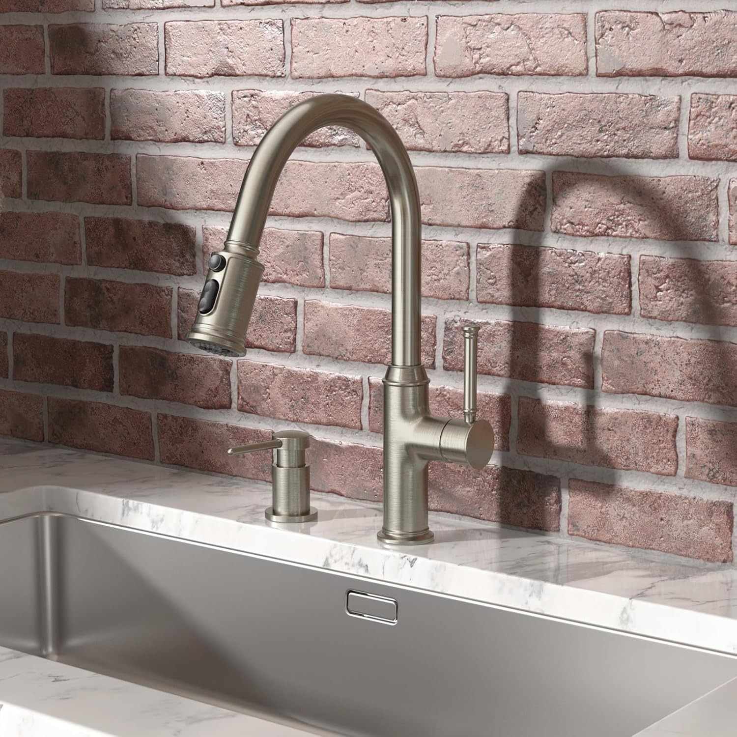 - Spot-free Finish - The kitchen soap dispenser is plated with multiple layers to resists water spots and fingerprint, making it easy to maintain and keeping your sink area looking clean. It features a hand-burnished finish with visible brush lines and the soft gleam. The subtle richness imbues kitchen with a warm, luxe feel. It matches various decoration styles, whether it is modern, vintage or farmhouse kitchen style.
