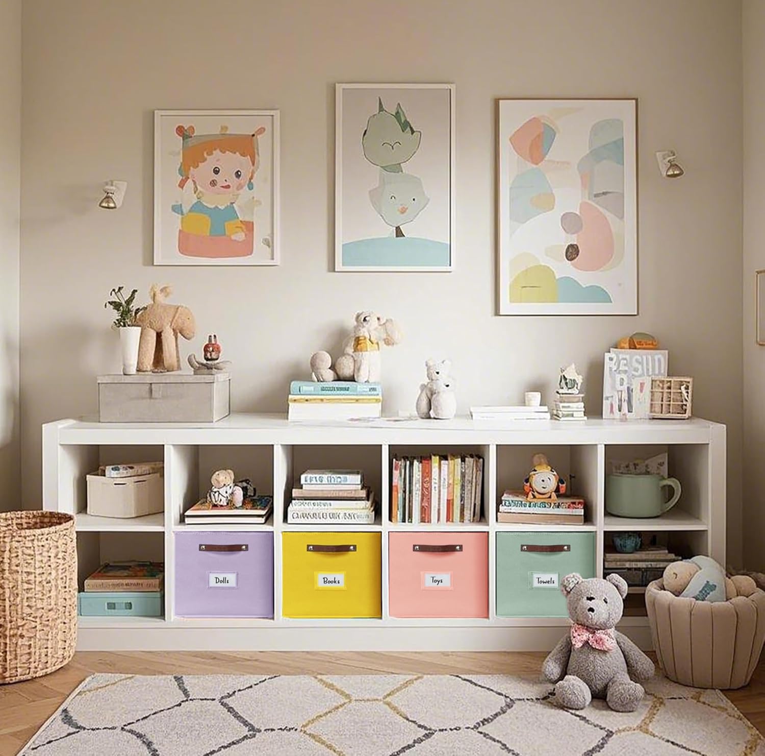 - 2-Sided Designs: With its dual handle features, our kids storage cubes can be used in both sides with a label holder on the front, or at the back.