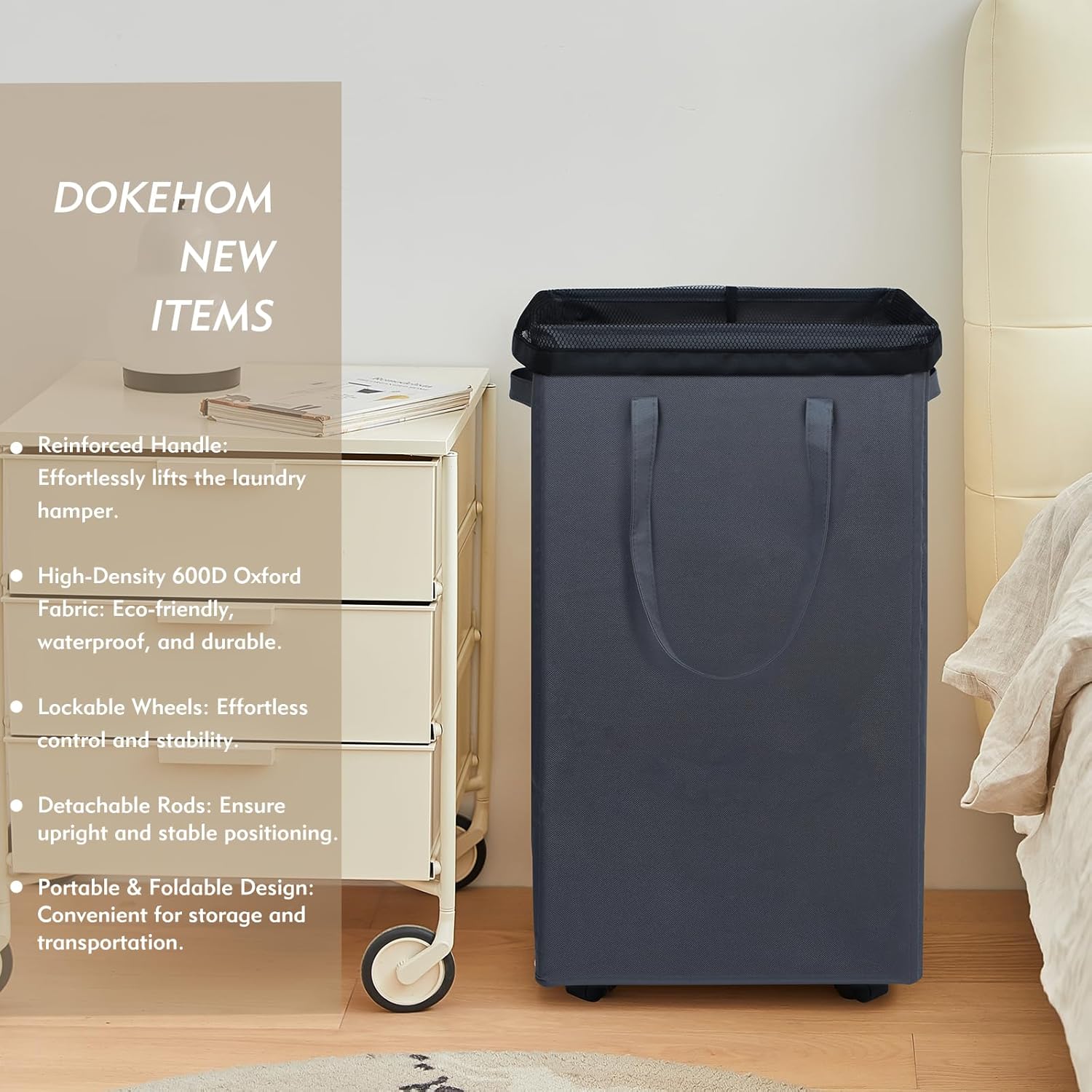 - 4 WHEELS - The laundry hamper on wheels is easy to move, brake on one of the wheels ensure safety for home use