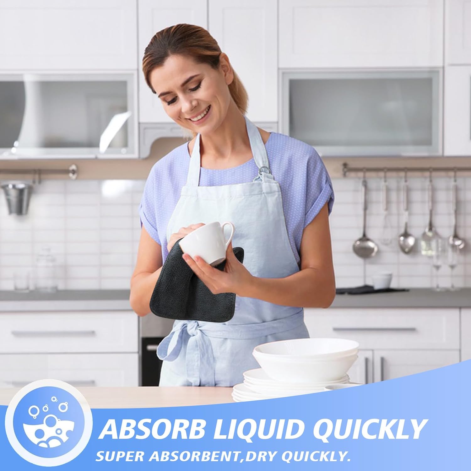 - ABSORB LIQUID QUICKLY WASHCLOTH FOR KITCHEN: These dish cloths are super absorbent, dry quickly, and any stains or grime from wiping counters washes right out with warm sopy water. Works well for buffing hard water spots from wet dishes