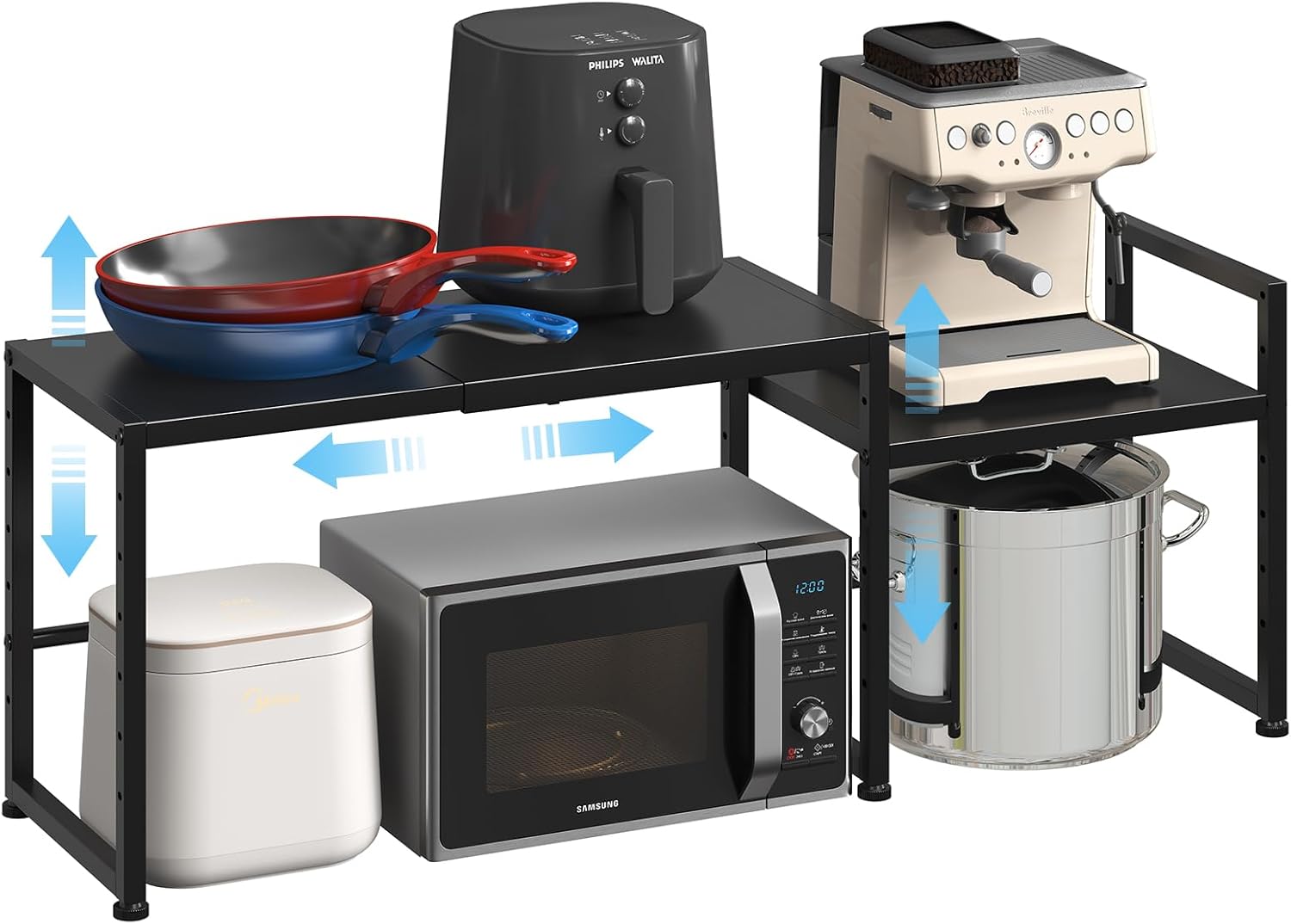 44.3 Inches Expandable Metal Storage Shelves,150LBS Heavy Duty Shelving Units and Storage For Appliance,Adjustable Utility Organization and Storage Shelf Rack For Kitchen Cabinet Closet Garage Pantry