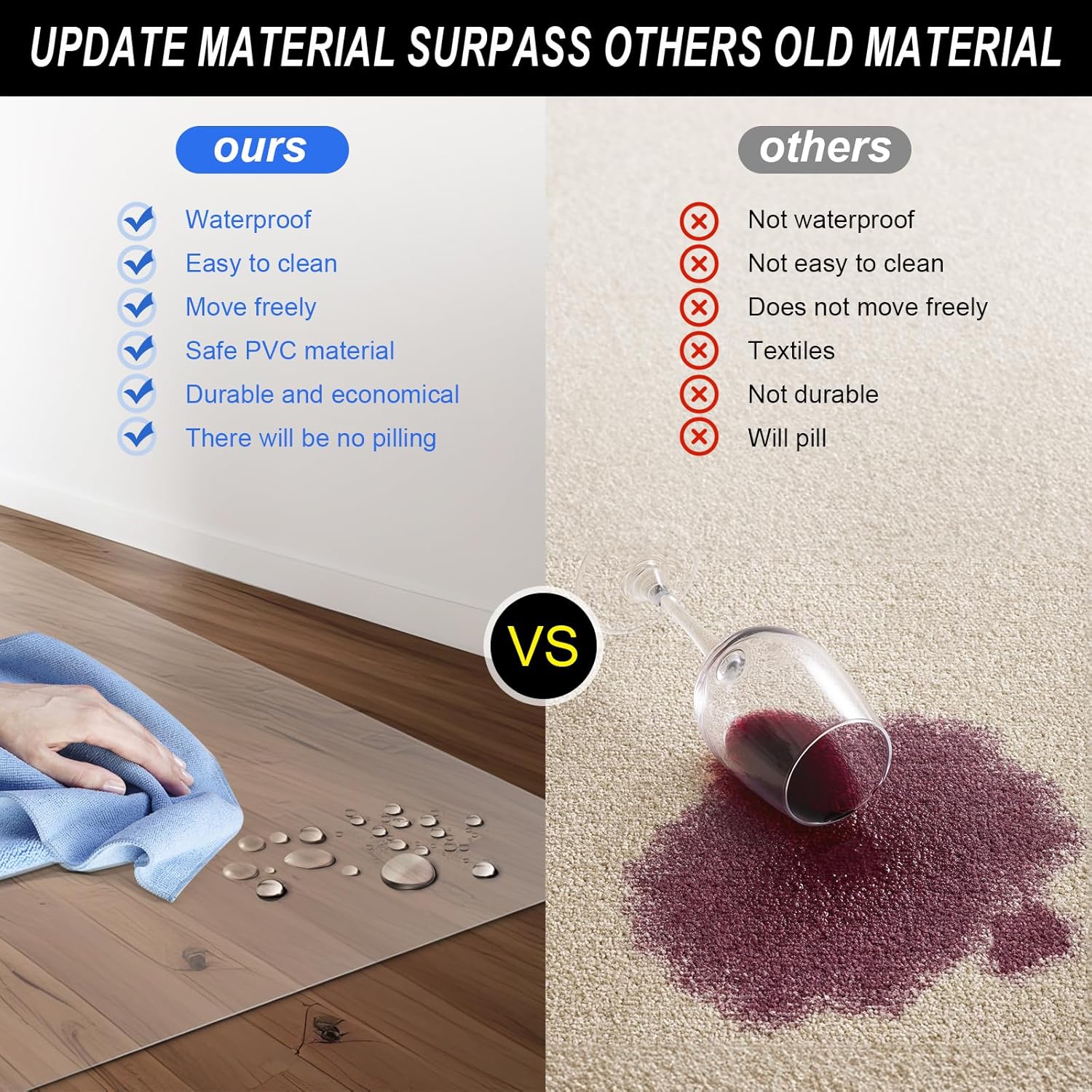 Azadx Chair Mat for Hardwood 60"x 36" Large Office Chair Mat for Hardwood Floors Protector Mat for Office Chair Easy Glide Rolling Plastic Clear Desk Computer Chair Mats for Home Offices