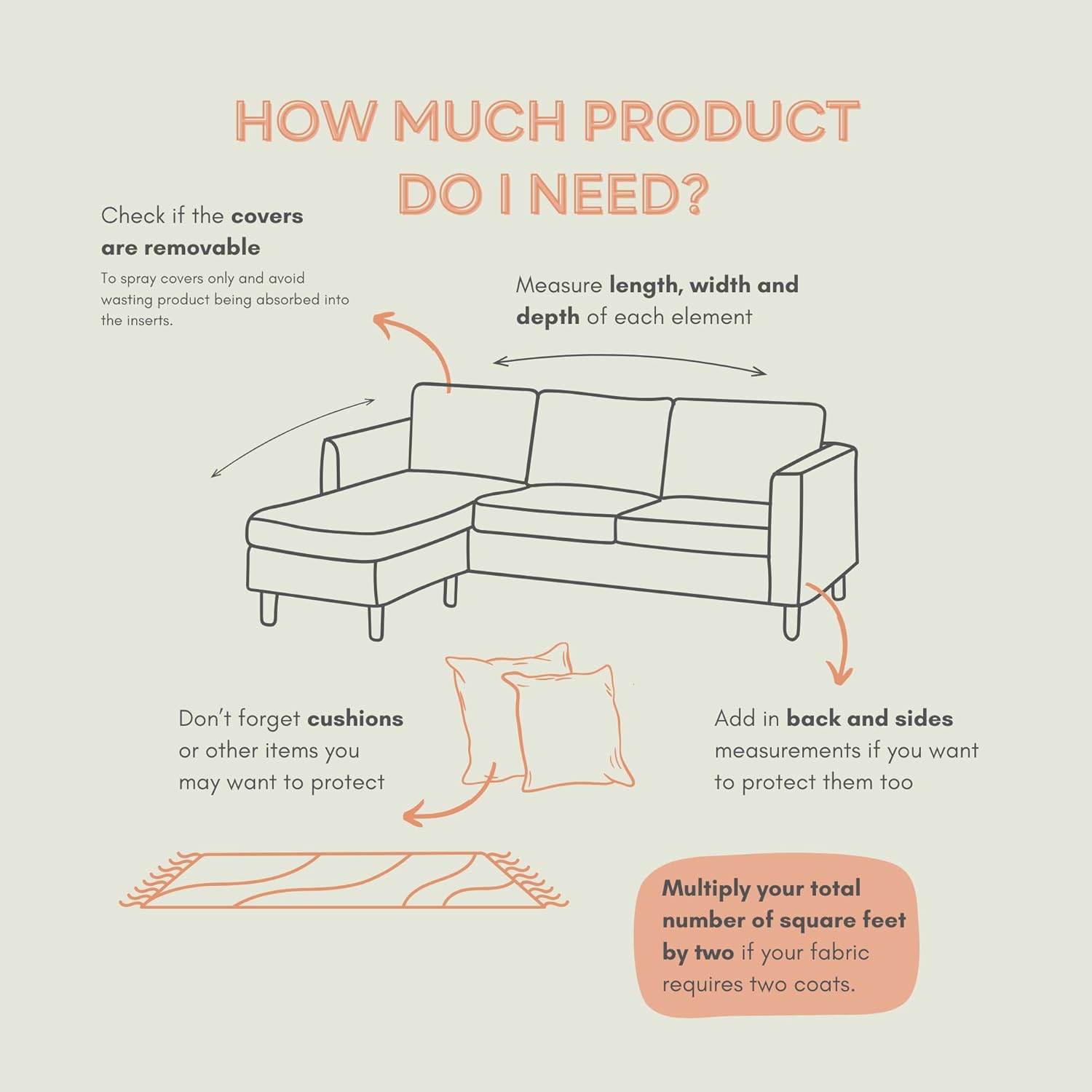 - EASY APPLICATION FOR LONG-LASTING RESULTS : Use a battery sprayer with protectME fabric protection for large areas and apply two coats on absorbent or textured fabrics. Buff in the first coat on napped or fluffy materials for even coverage. High-traffic areas may need reapplication, but protection remains effective.