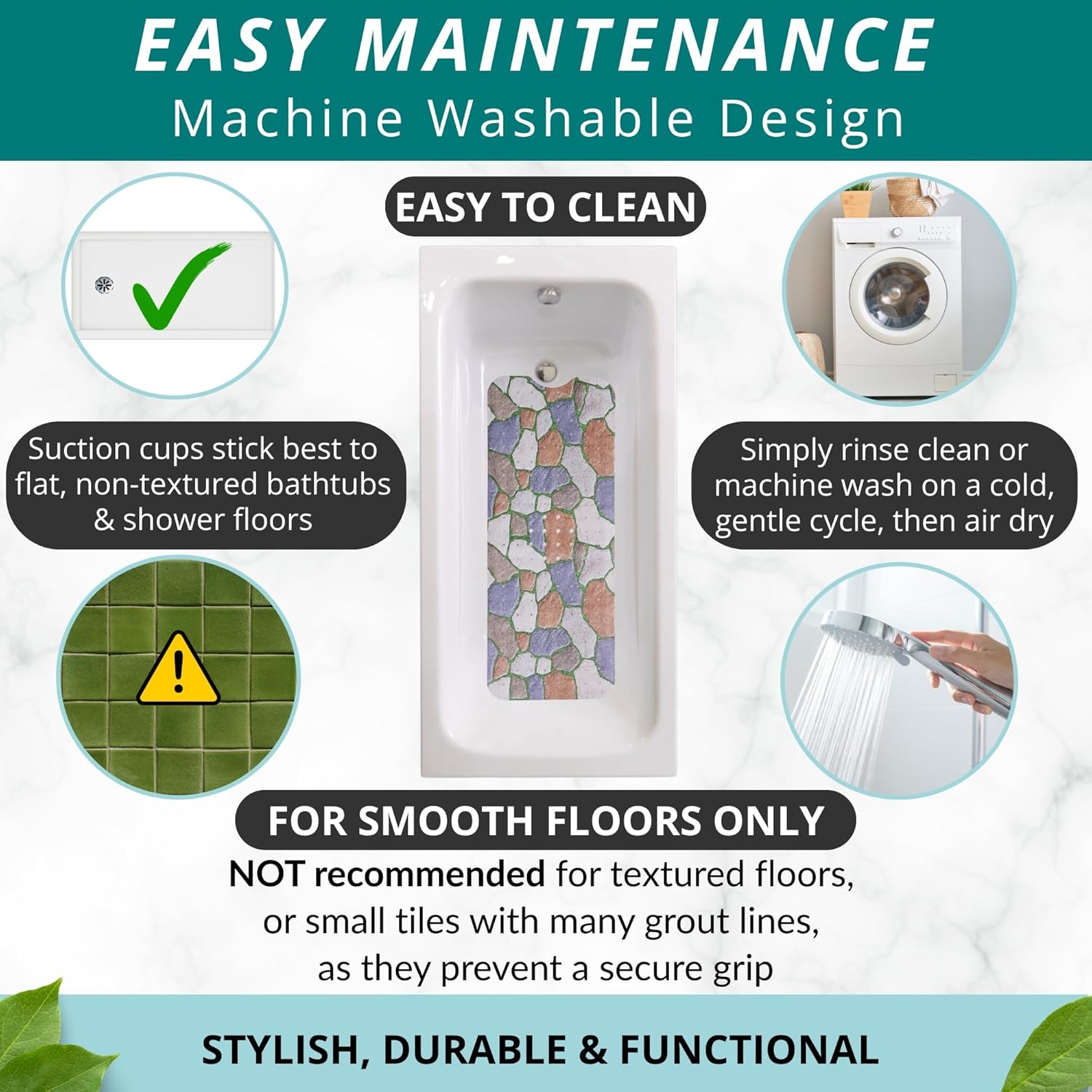 ENKOSI Bath Mat – Large 40 x 16 Inch Non-Slip Bathtub Mat with Secure Suction Cups & Drain Holes – Extra Long Bathroom Shower Mat for Tub with Stone Path Design (40x16 Stone Path)