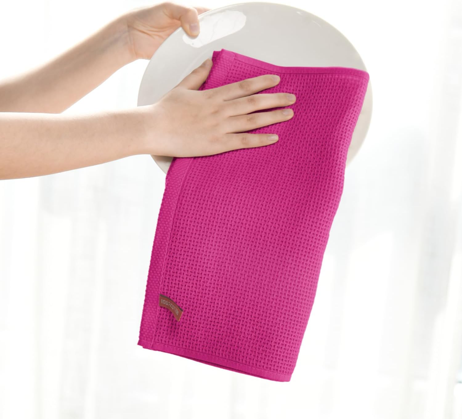 - COTTON DISH CLOTHS: 100% cotton waffle weave dishcloths that feel soft and comfortable. Unique honeycombs design make it have durability. And it softens with each wash, so these dish towels won't scratch your delicate cookware, plates and pans.