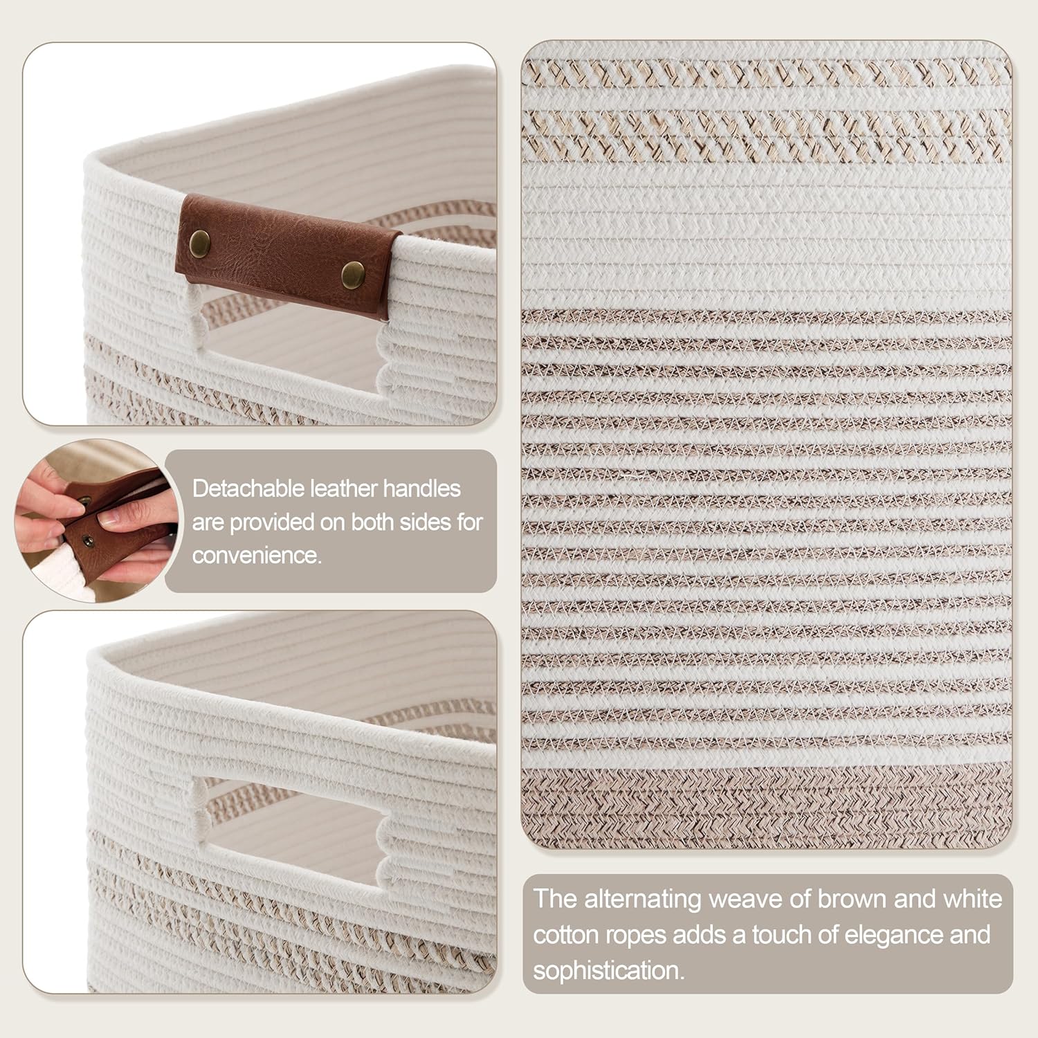 - DURABLE & HOME-FRIENDLY: Natural cotton rope weaving craft. The woven basket is crafted from high-quality cotton thread, making it sturdy and durable for long-term use. The SunNewt Large rectangular basket has no sharp edges, securing family safety and suitable for households with kids, the elderly , and pets