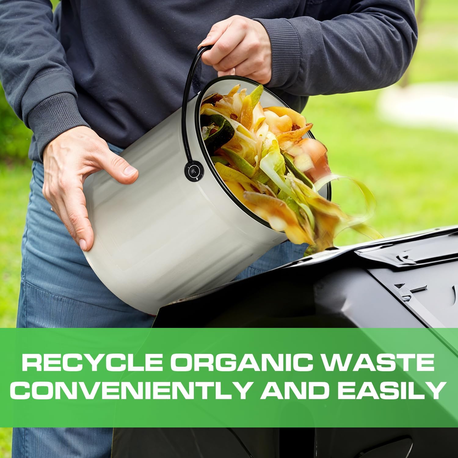 - High Quality Compost Bin Kitchen Counter: This countertop compost bin made of durable steel. Our indoor compost bin, food waste bin for kitchen is sturdy construction, ensures longevity, resists rust, and is easy to clean. Easy to carry with a sturdy handle.